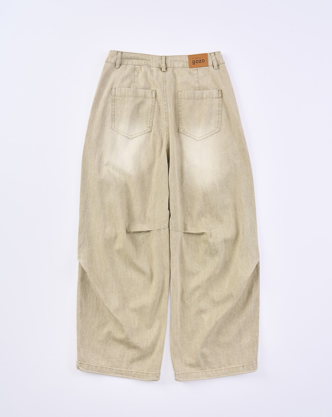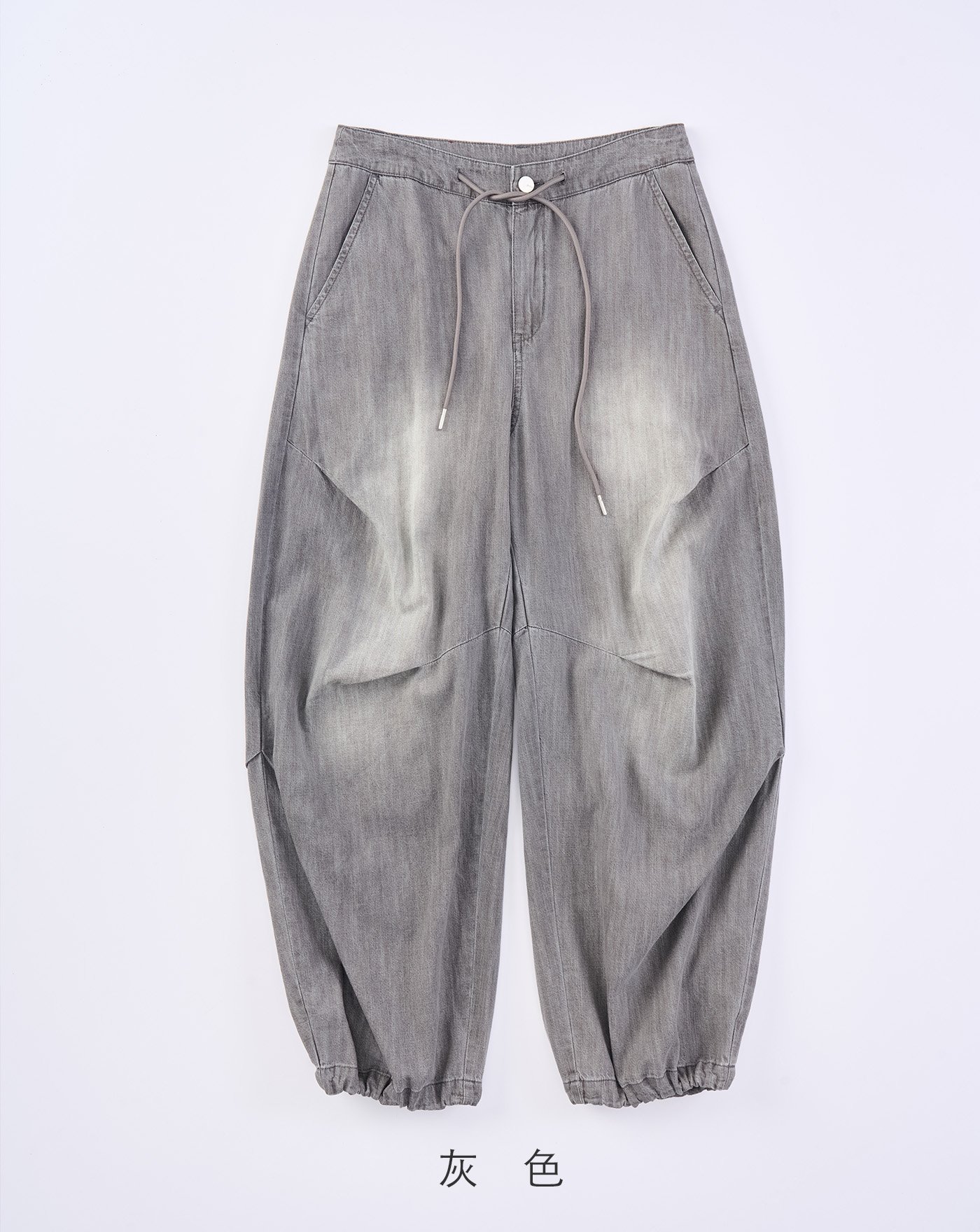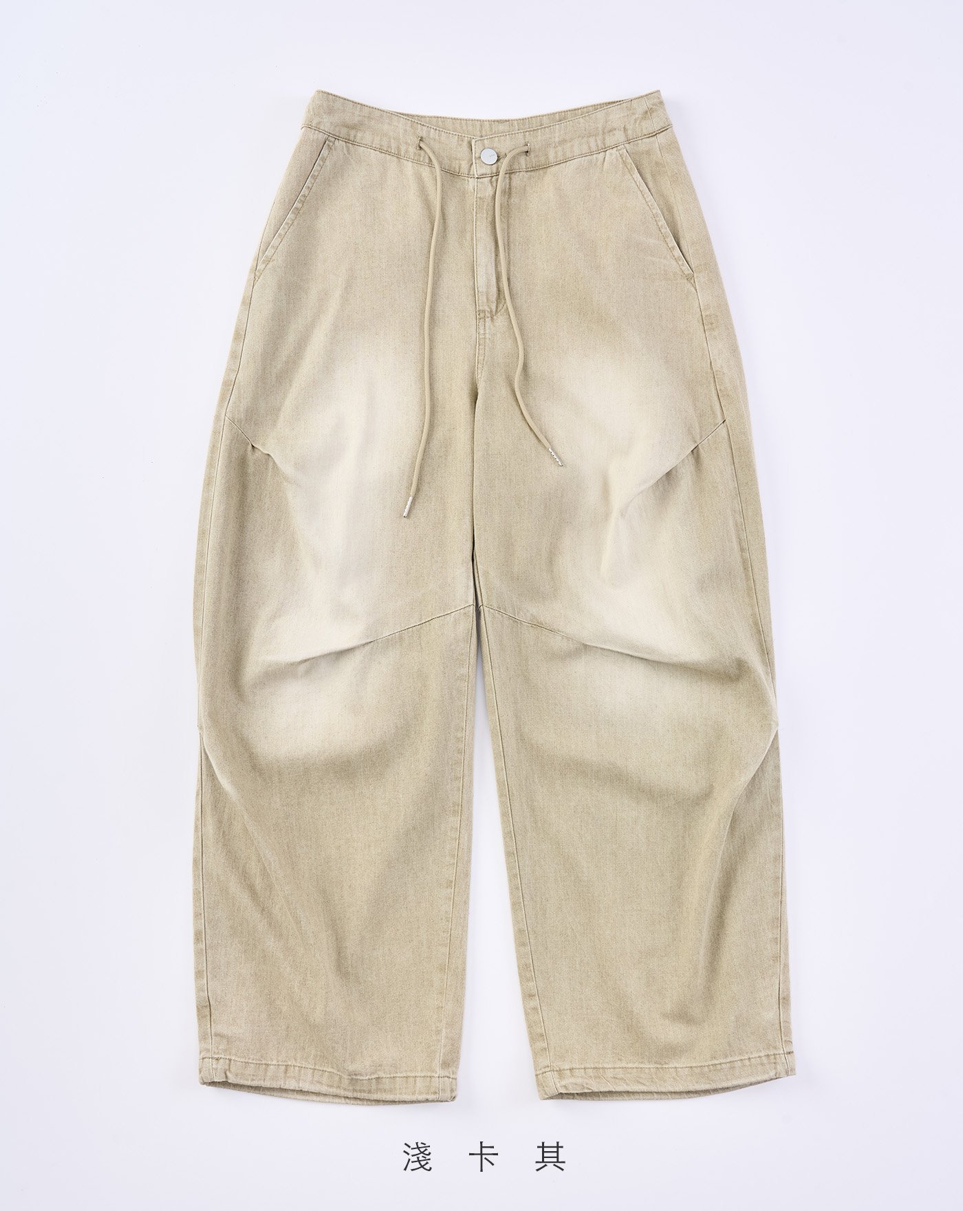A|復古風線條刷色水洗牛仔寬褲(兩色)