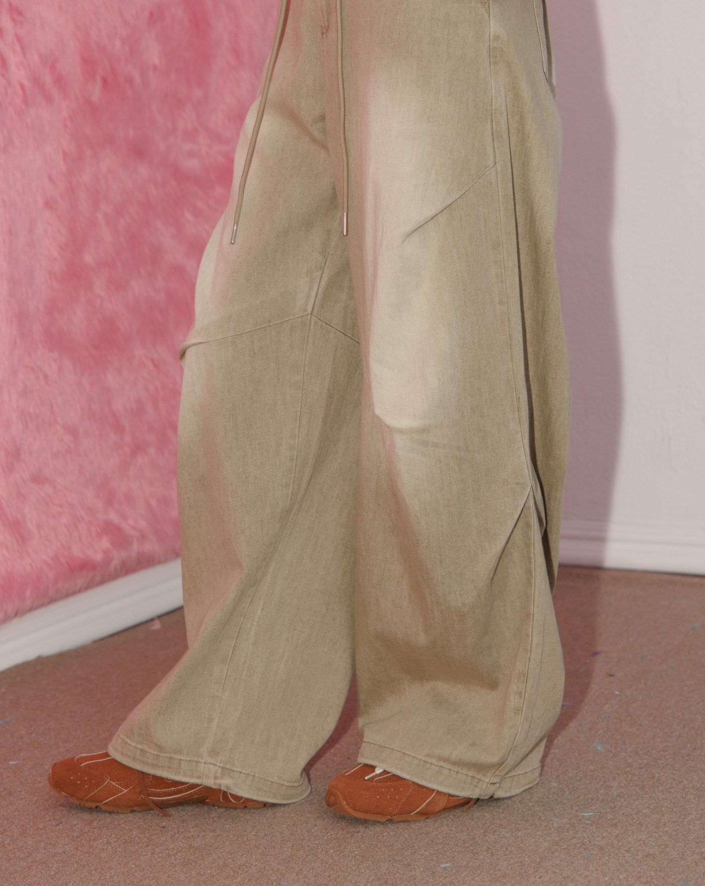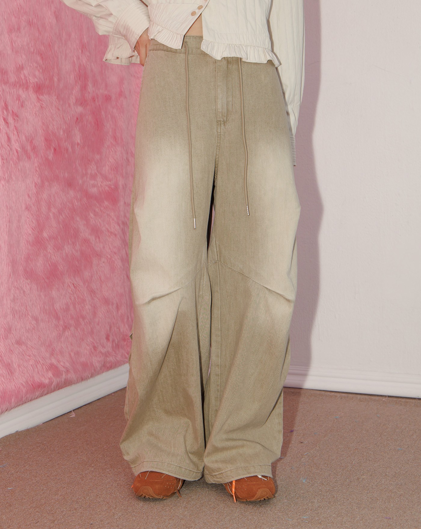 A|復古風線條刷色水洗牛仔寬褲(兩色)