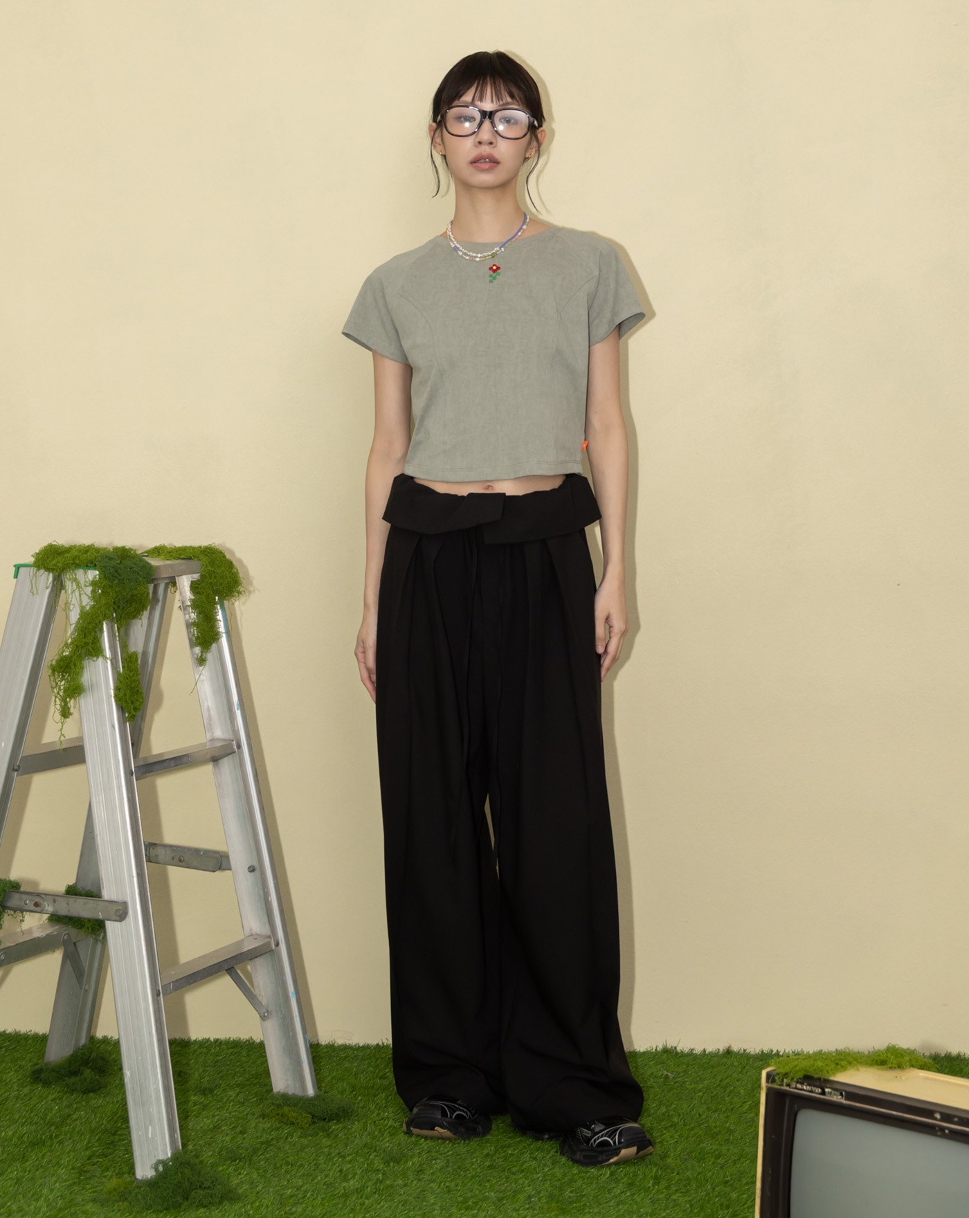 A|立體打褶低腰水洗牛仔寬褲(兩色)