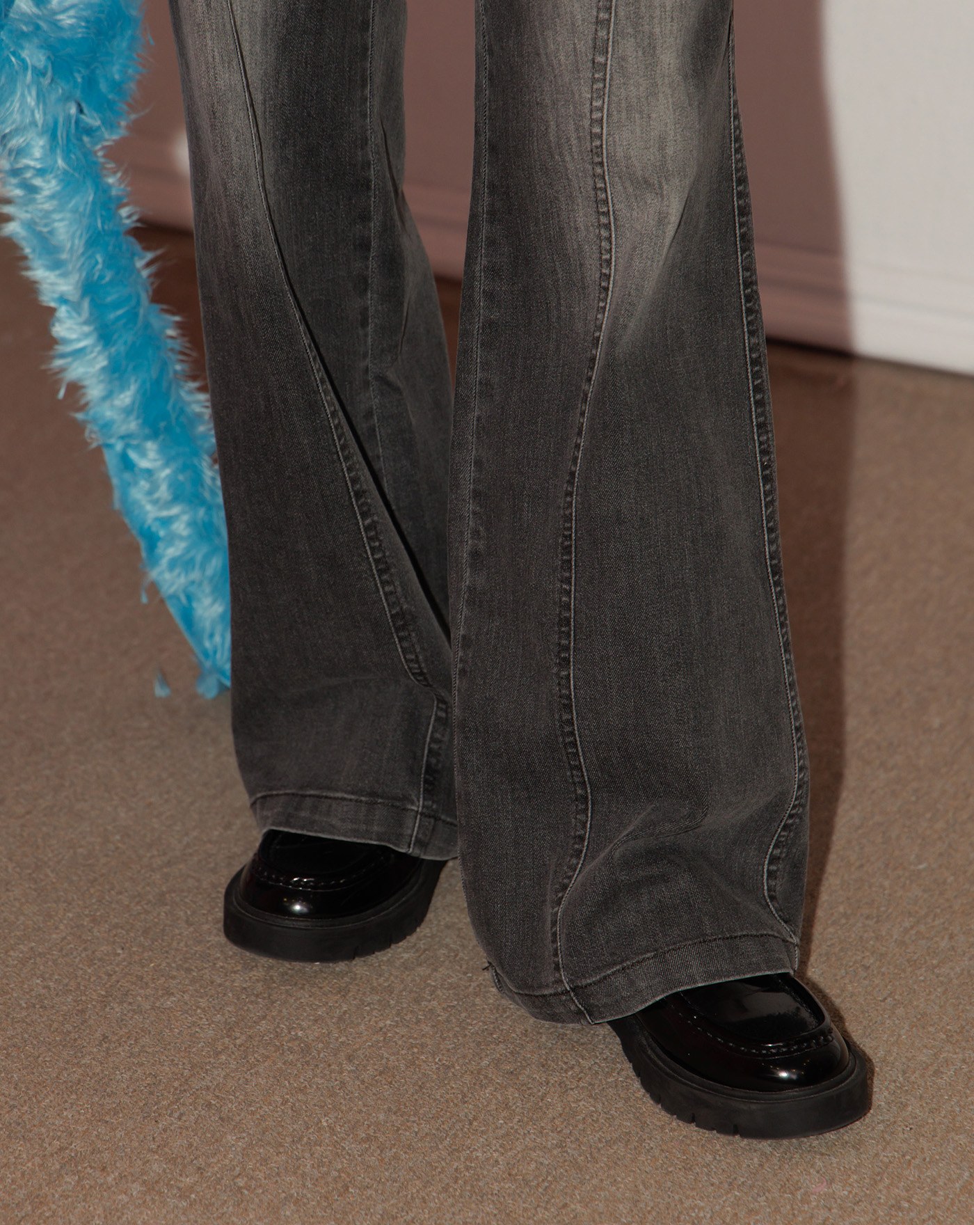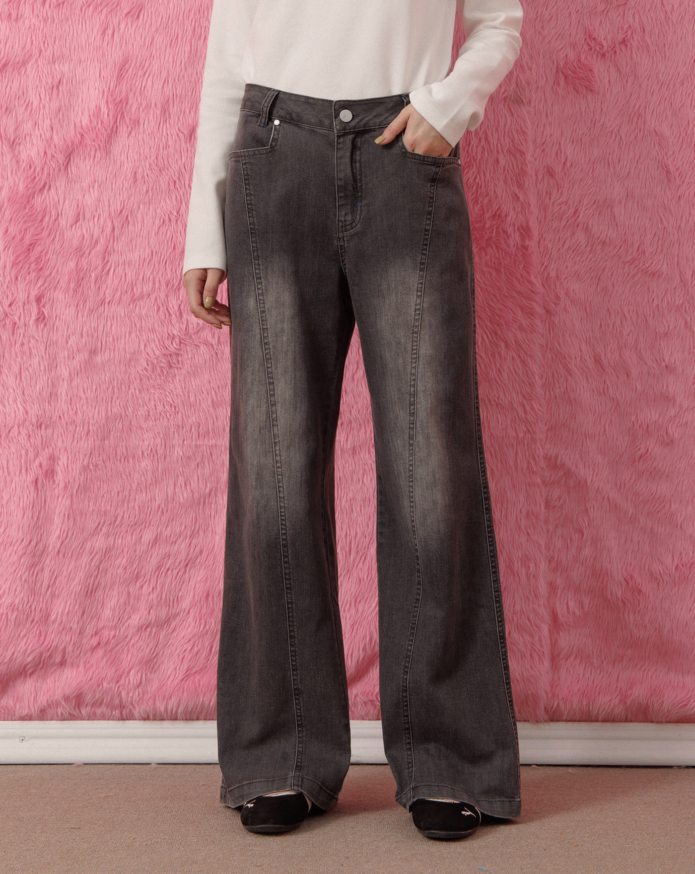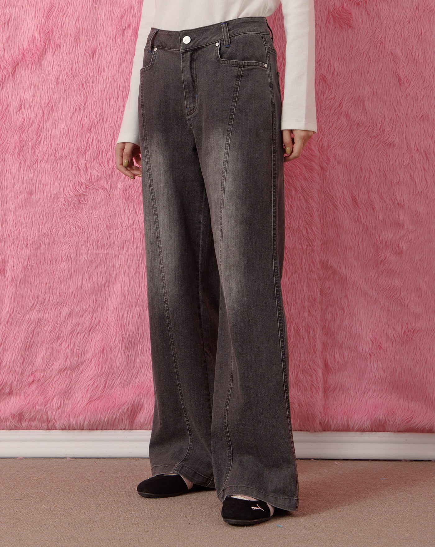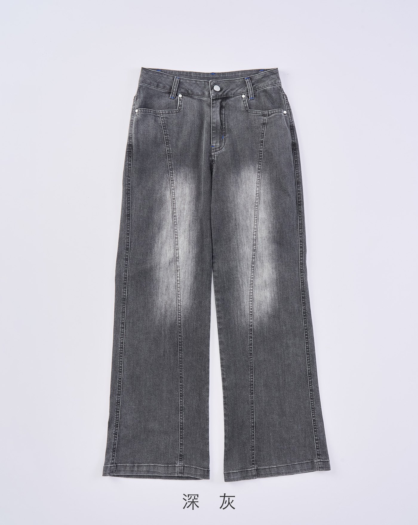 A|好比例異材質拼接水洗牛仔寬褲(兩色)