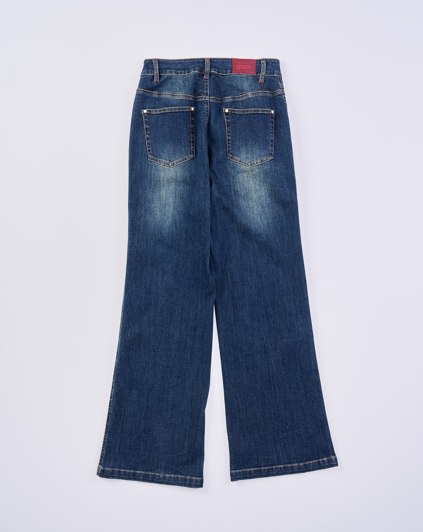 A|顯瘦刷色不對稱腰頭兩件式牛仔褲(兩色)