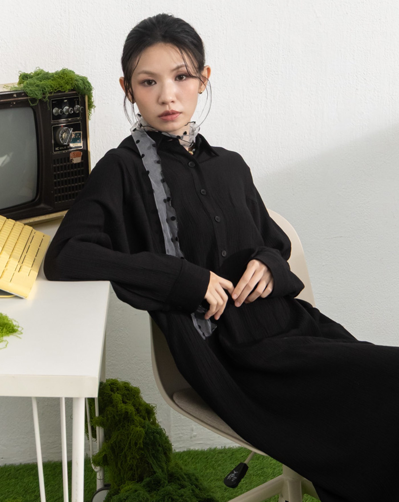 立體凹凸皺皺肌理,皺褶結構有自然延展彈力,柔軟垂感墜不貼身,50%人造絲纖維親膚涼爽