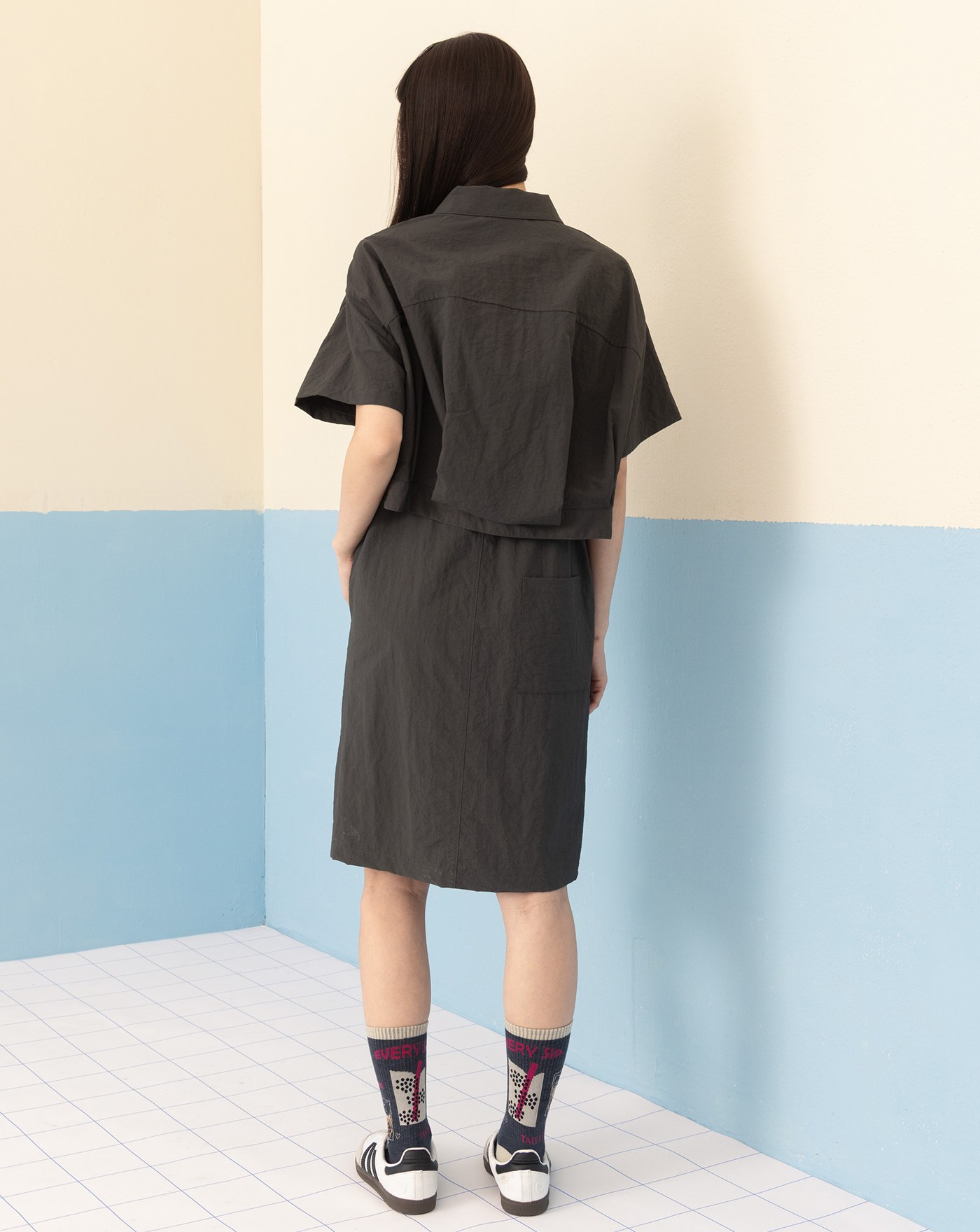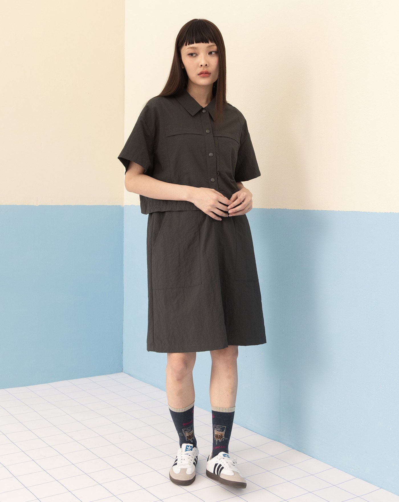 透氣防曬拉鍊立領下擺抽繩短洋裝(兩色)
