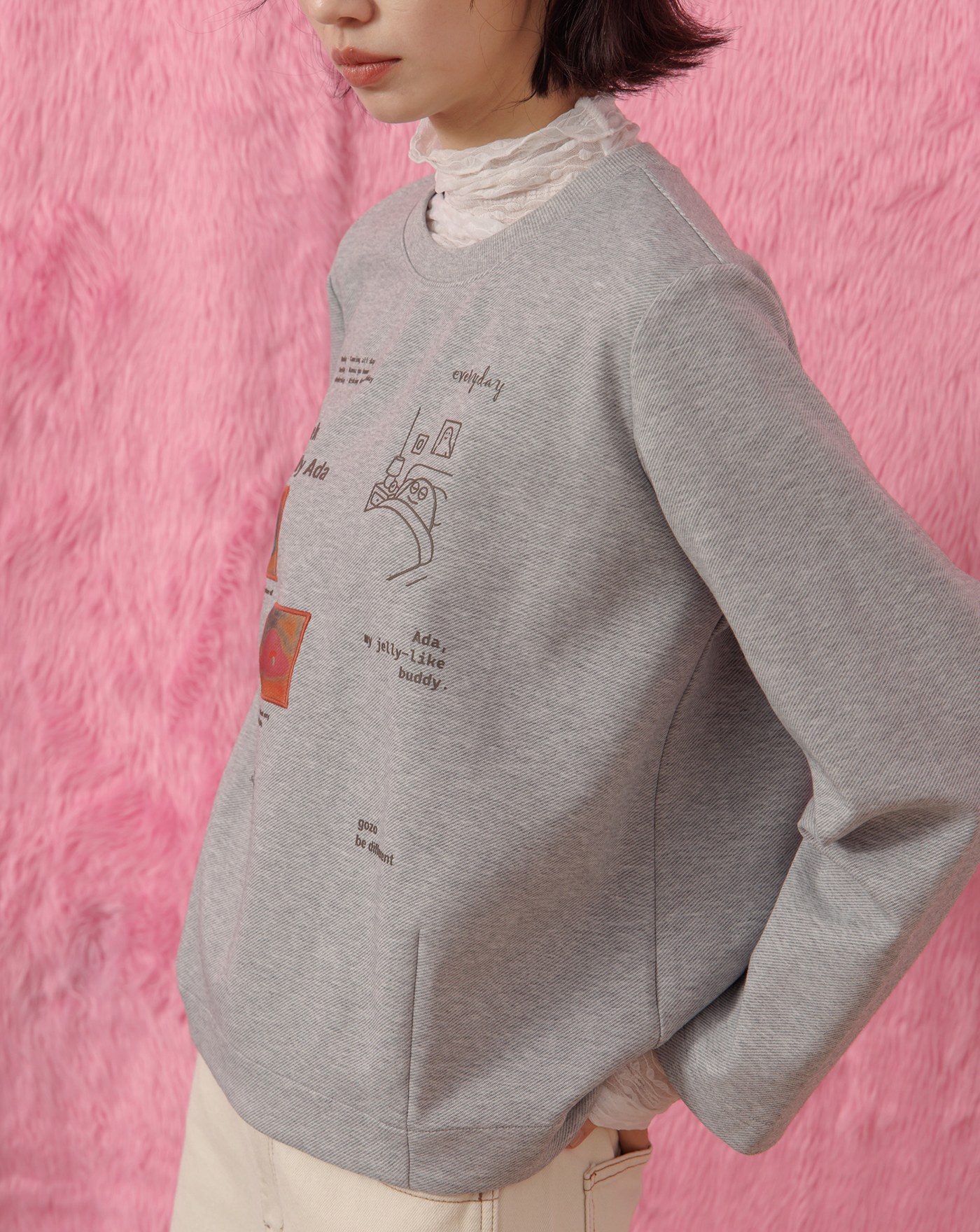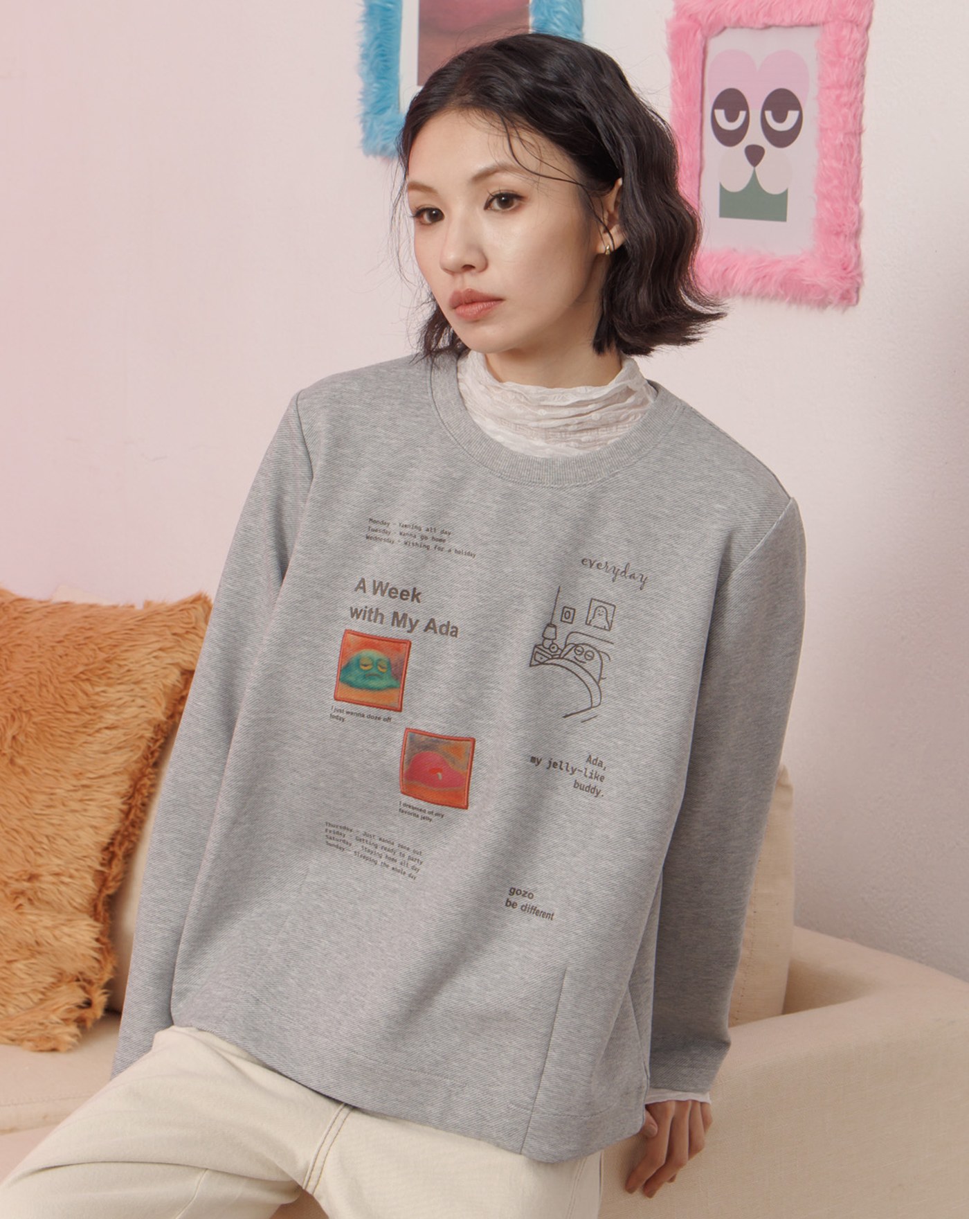 馬上平靜Q感毛毛短版大學T(兩色)