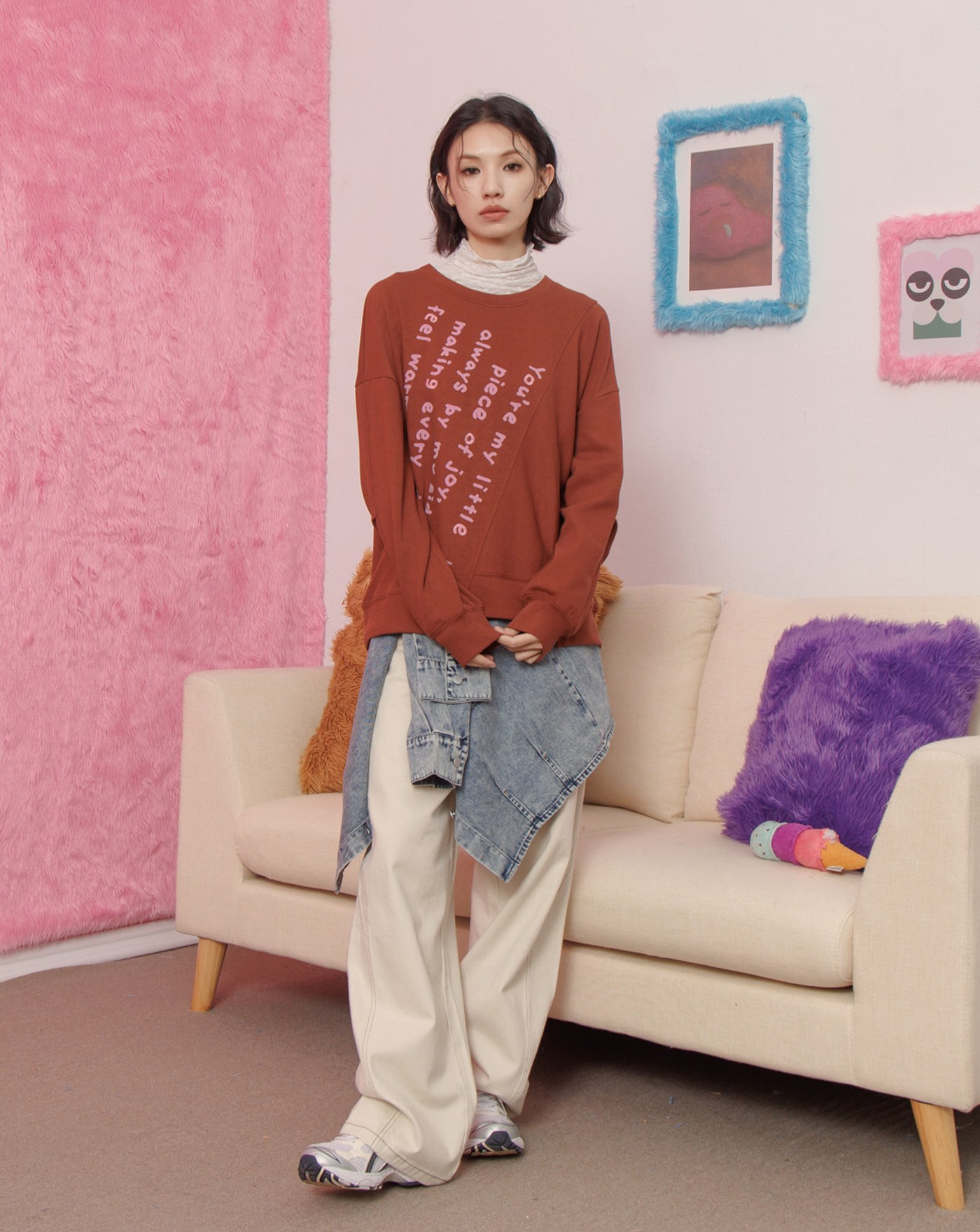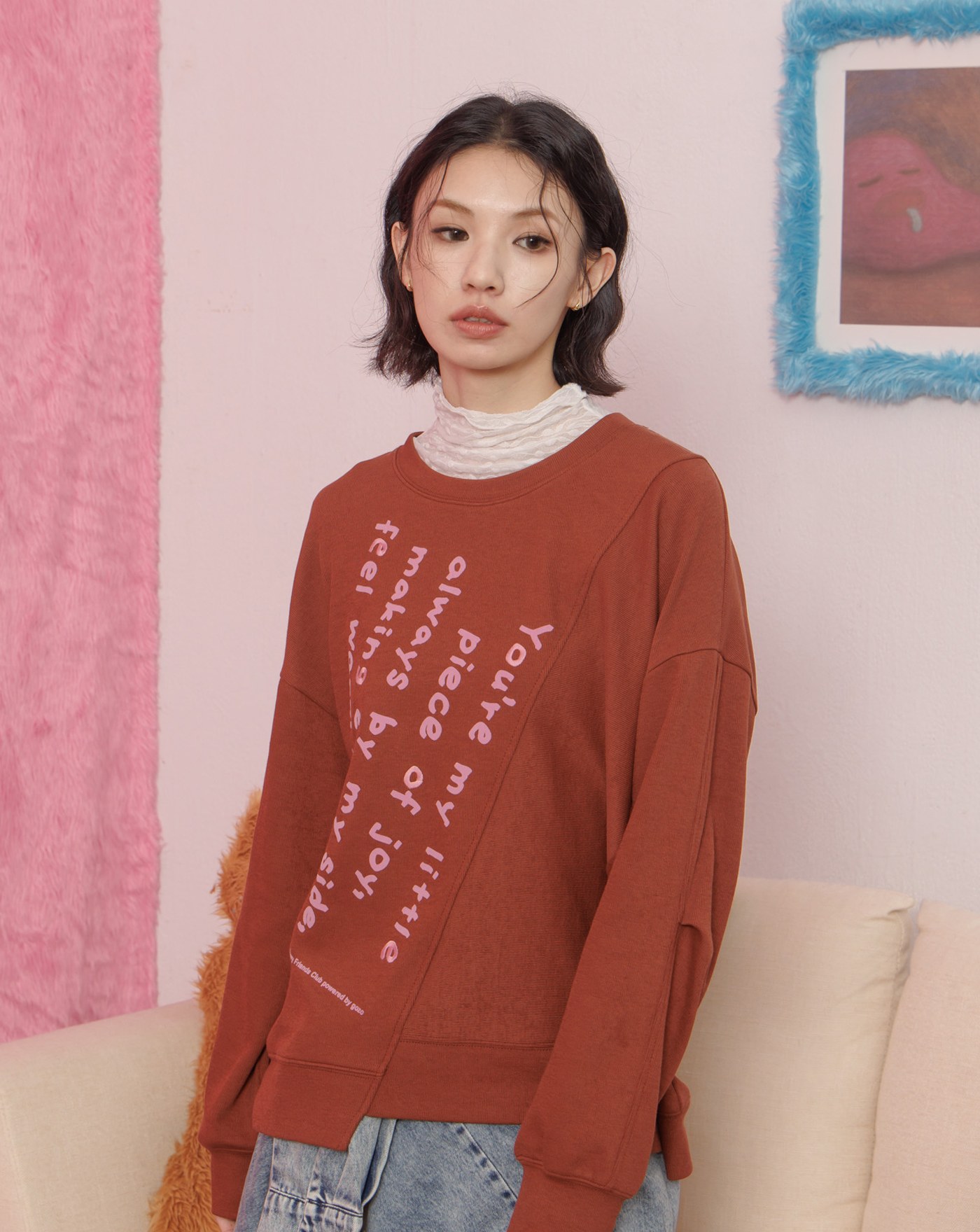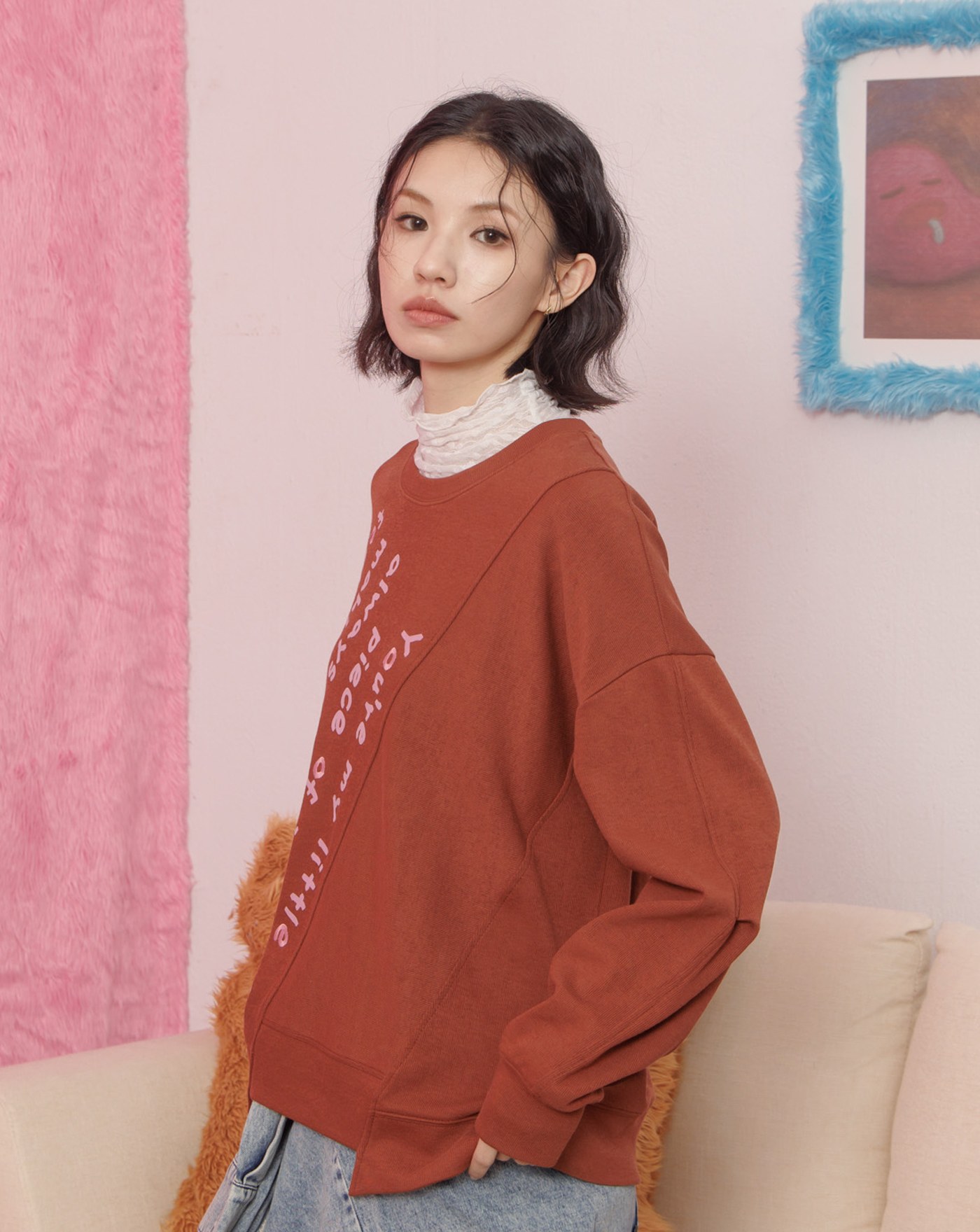 馬上平靜Q感毛毛短版大學T(兩色)