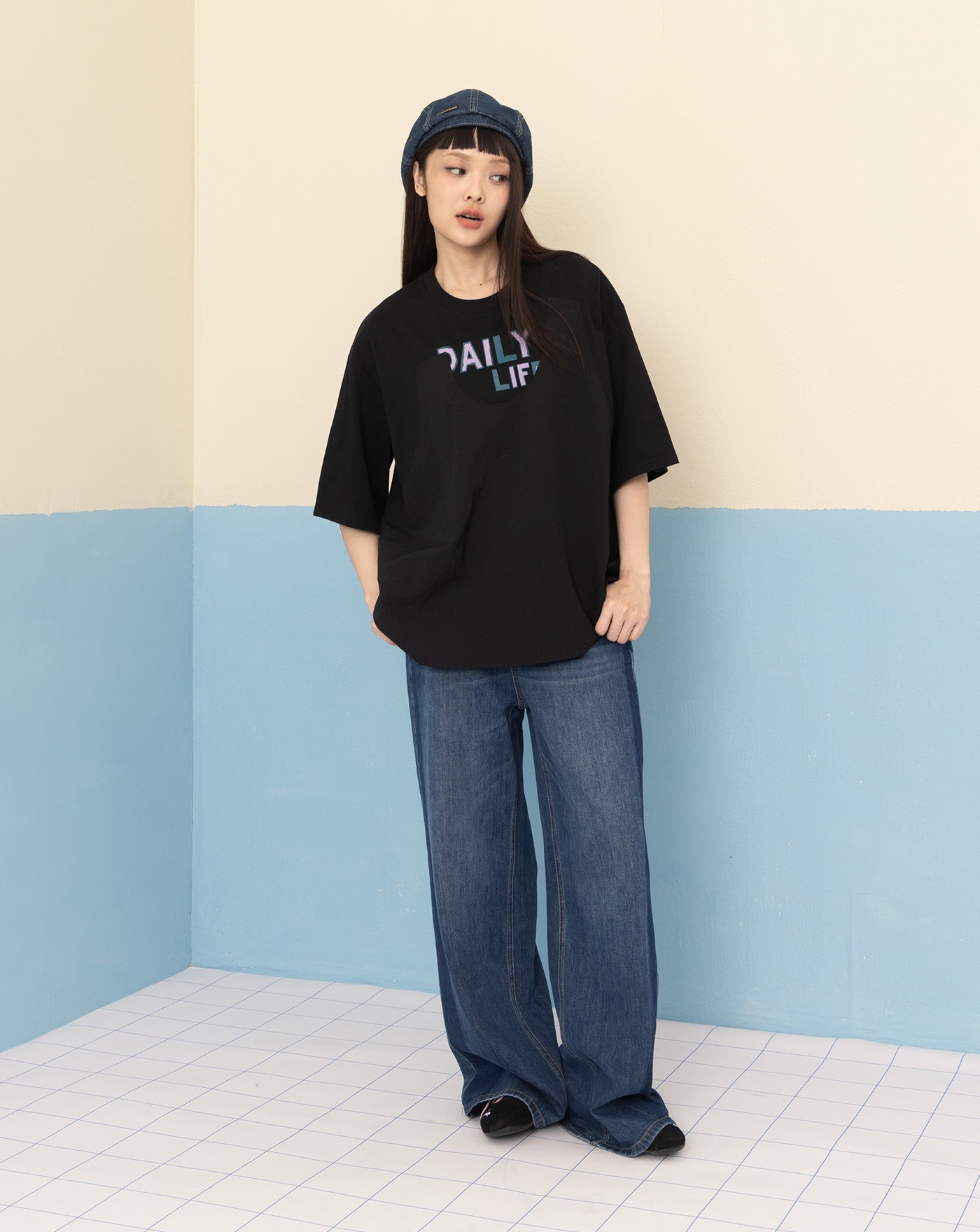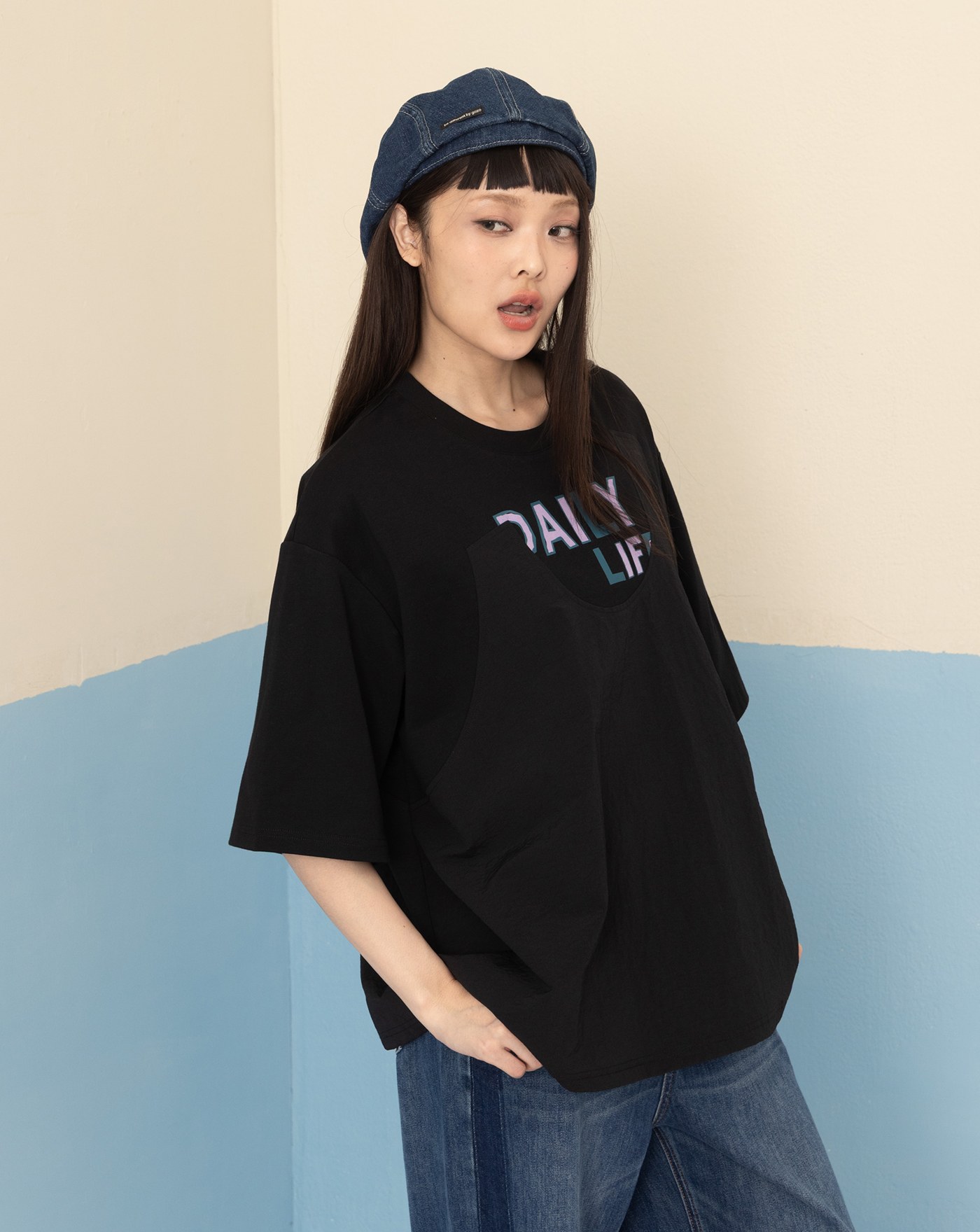 shadow顯瘦拼色直筒牛仔褲(兩色)