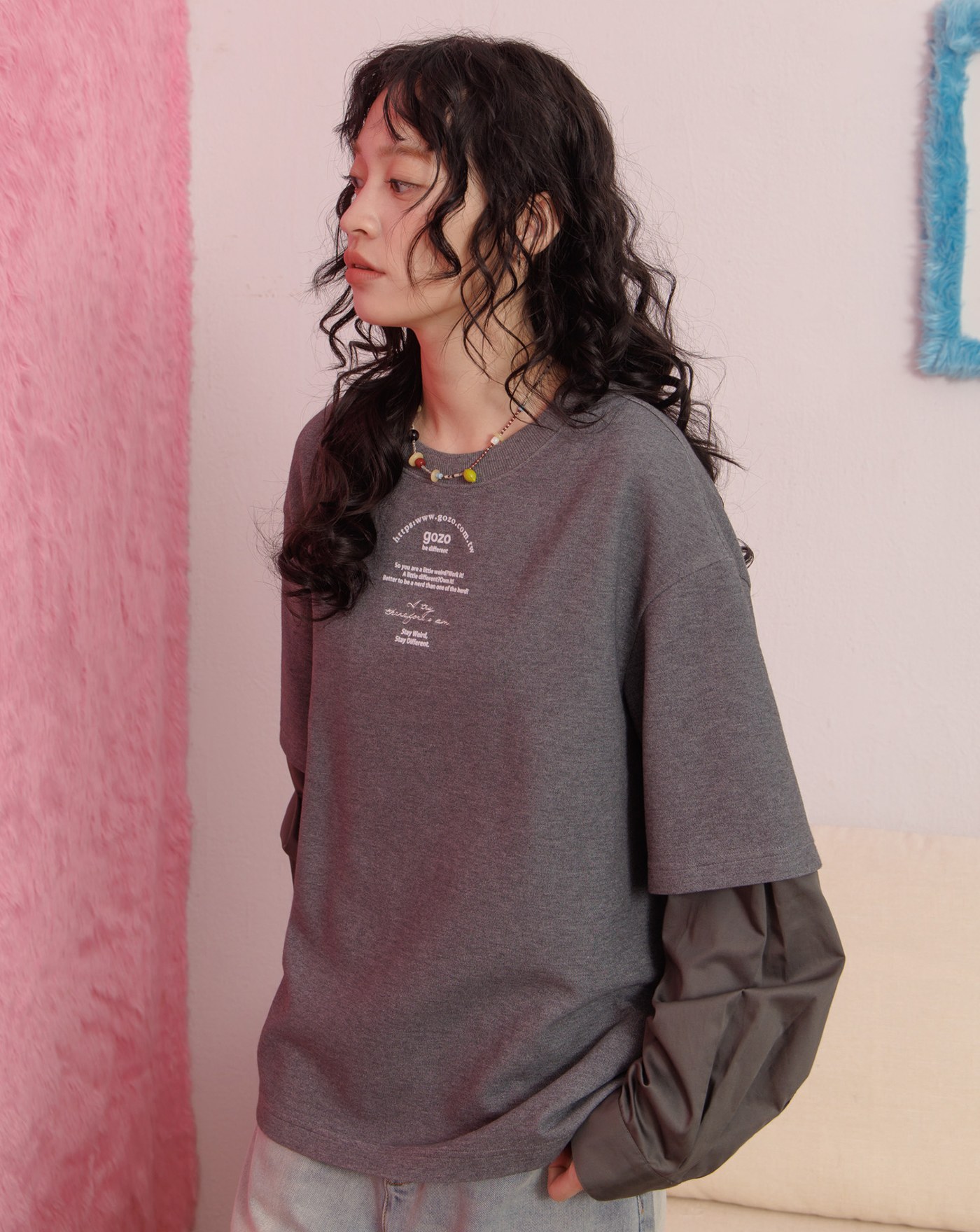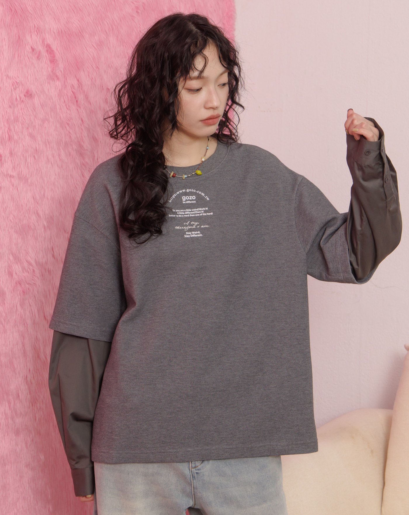 層次拼色落肩大學T(兩色)