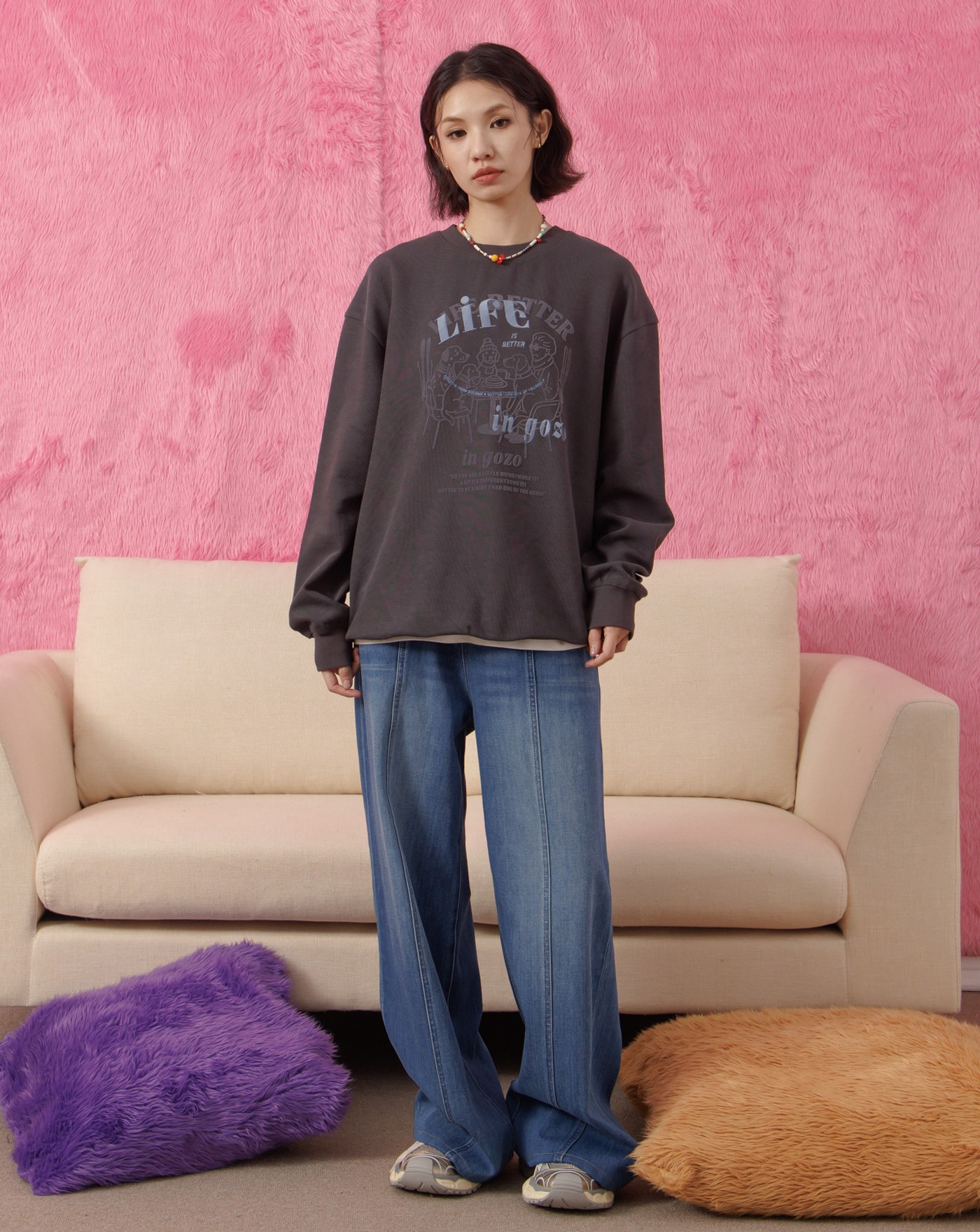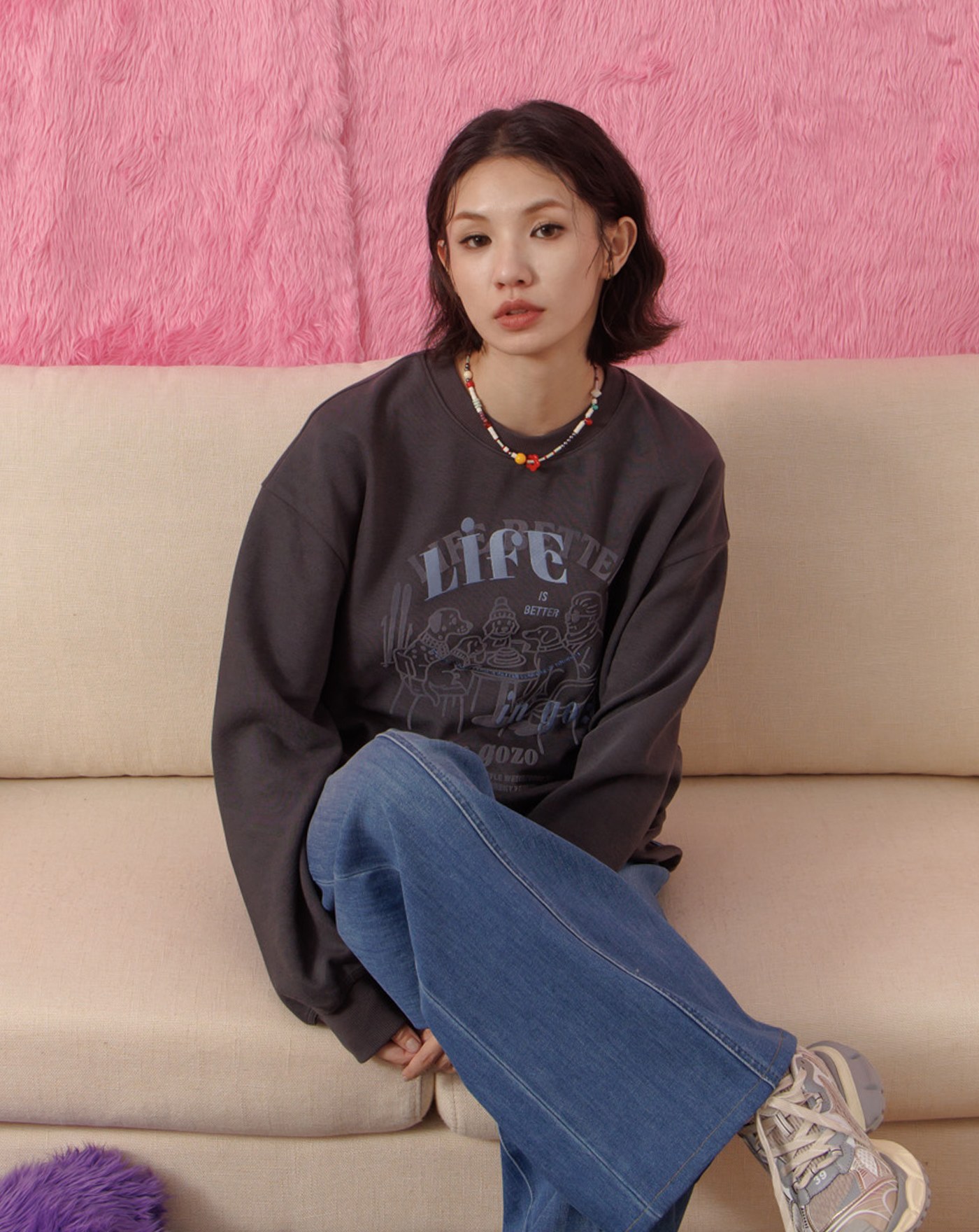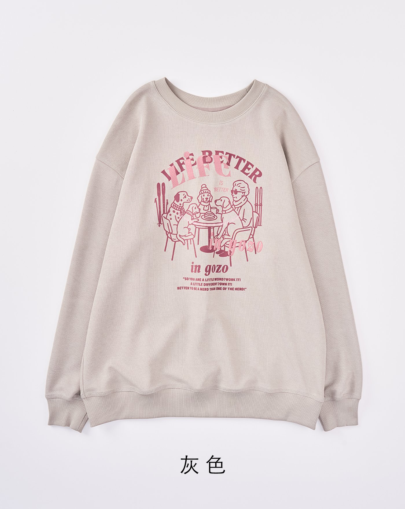 奶奶與狗狗們的下午茶後打褶大學T(兩色)