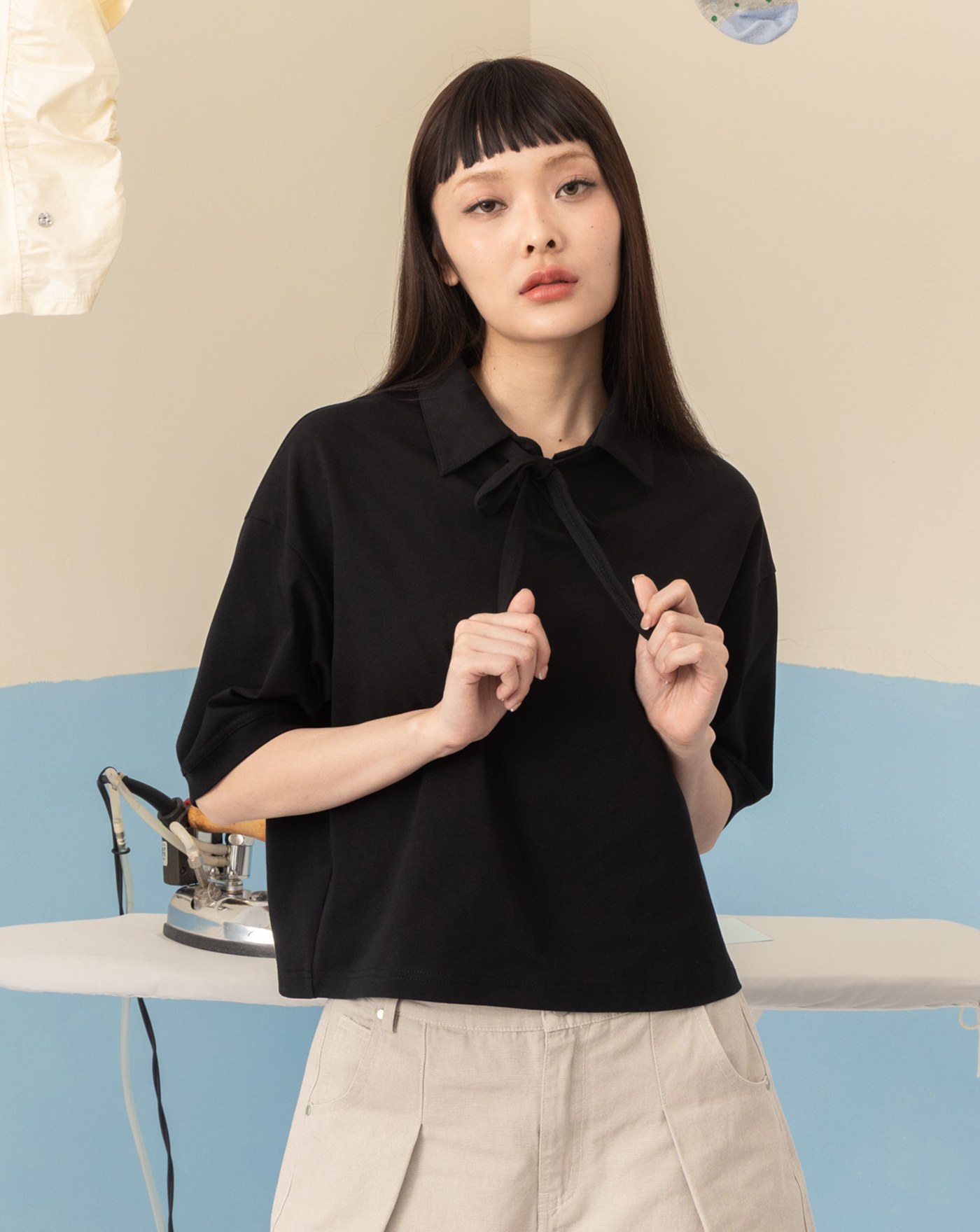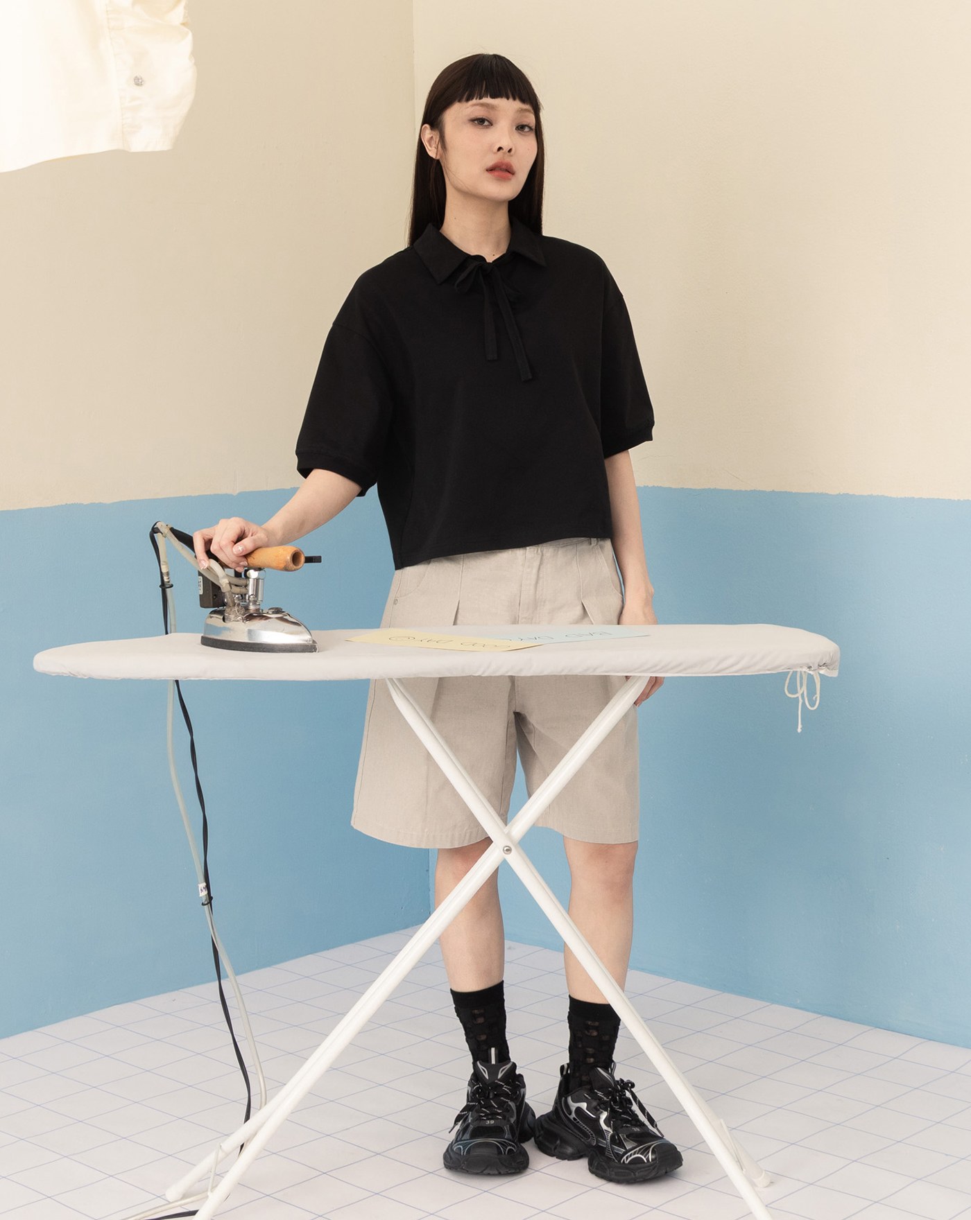 復古水洗後鬆緊打褶短褲(兩色)