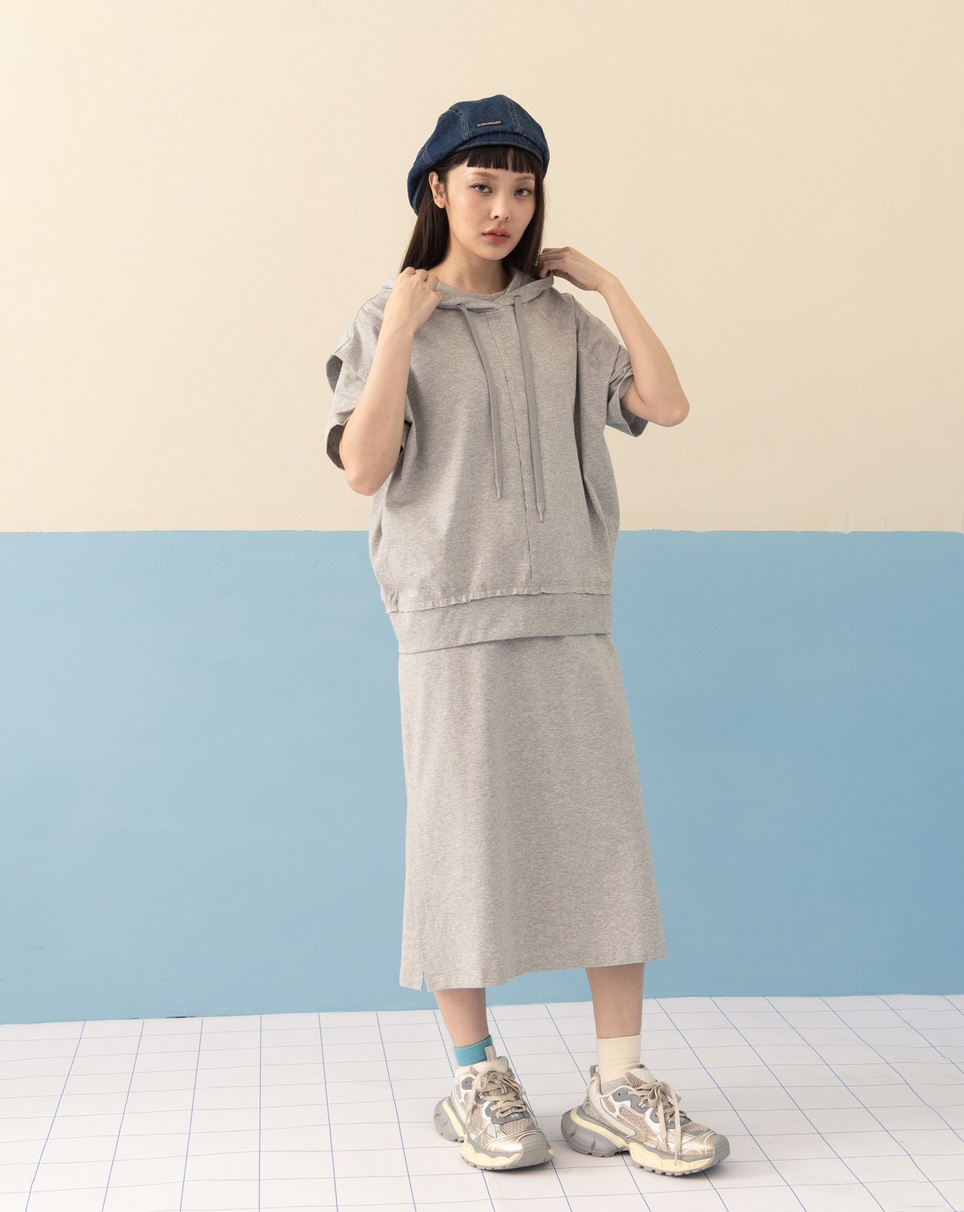 透氣防曬格紋滾邊下擺抽繩背心(兩色)