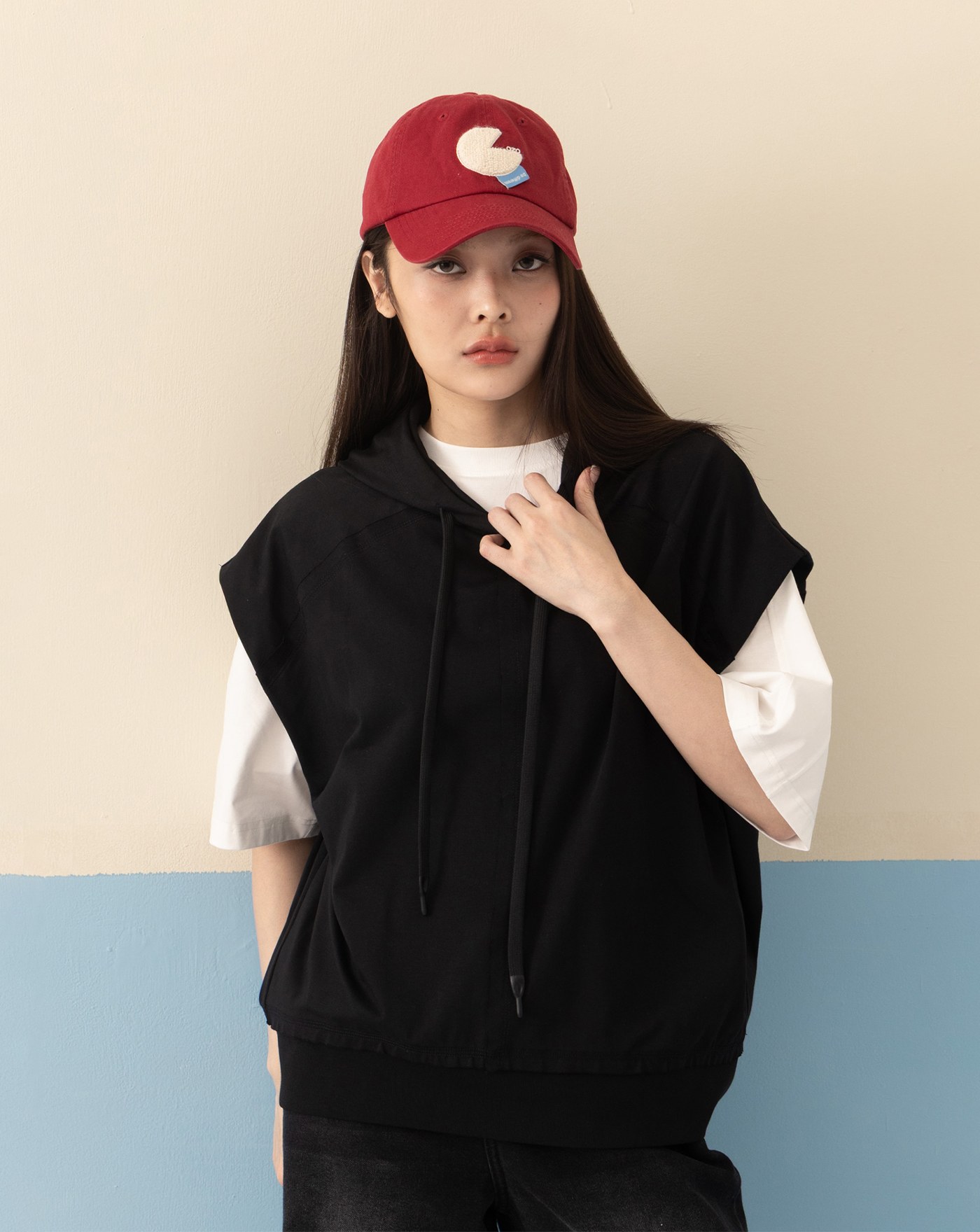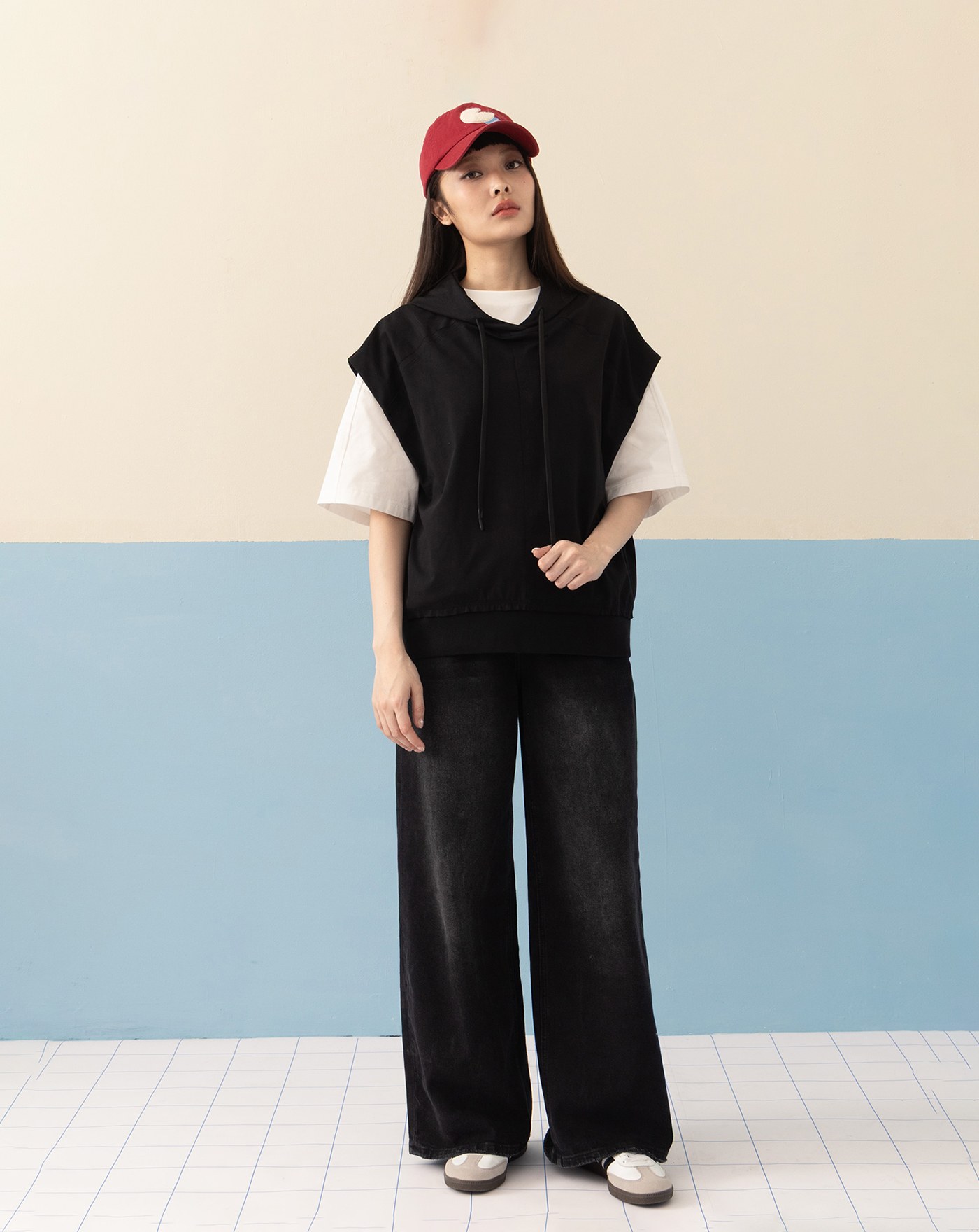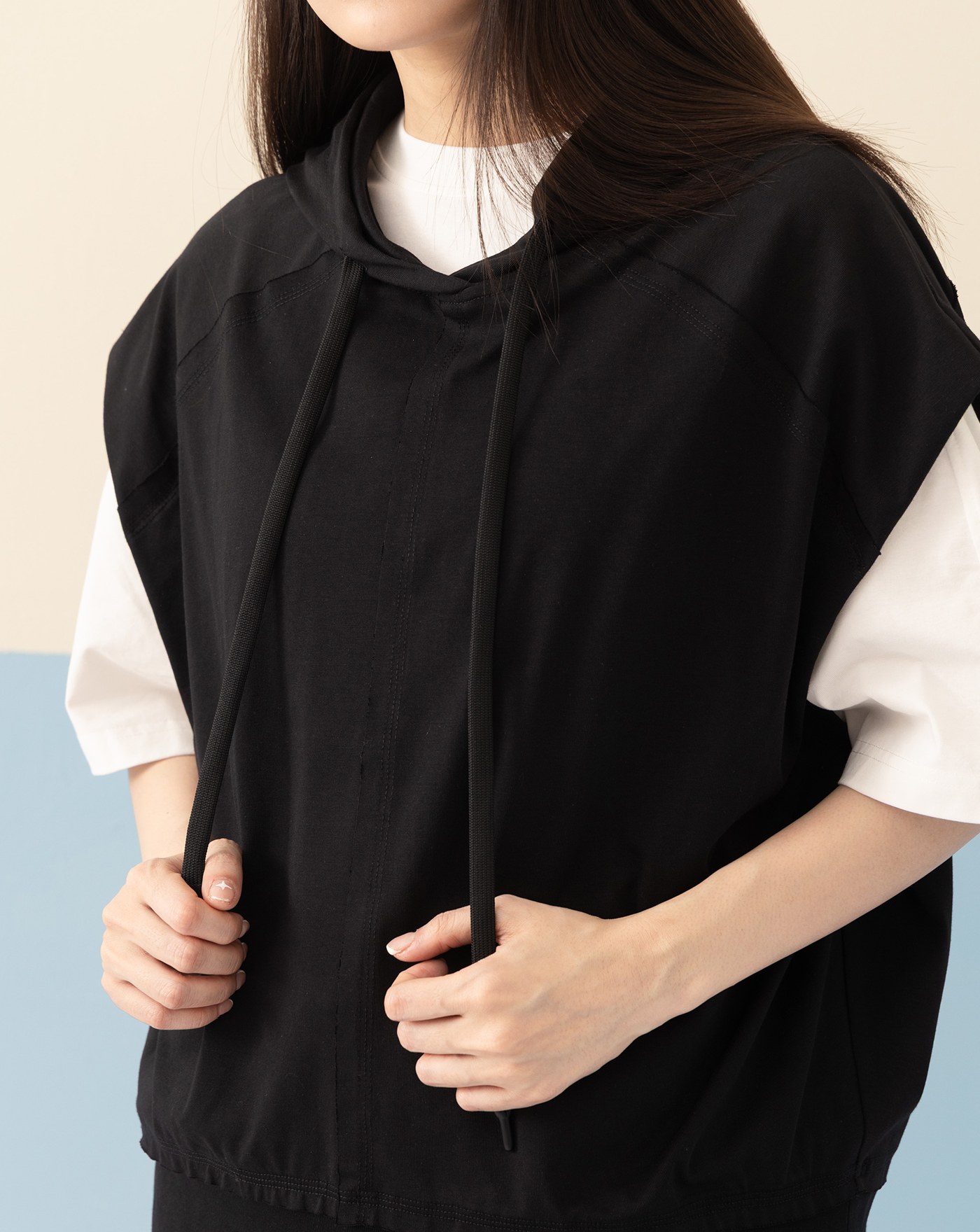 透氣防曬格紋滾邊下擺抽繩背心(兩色)