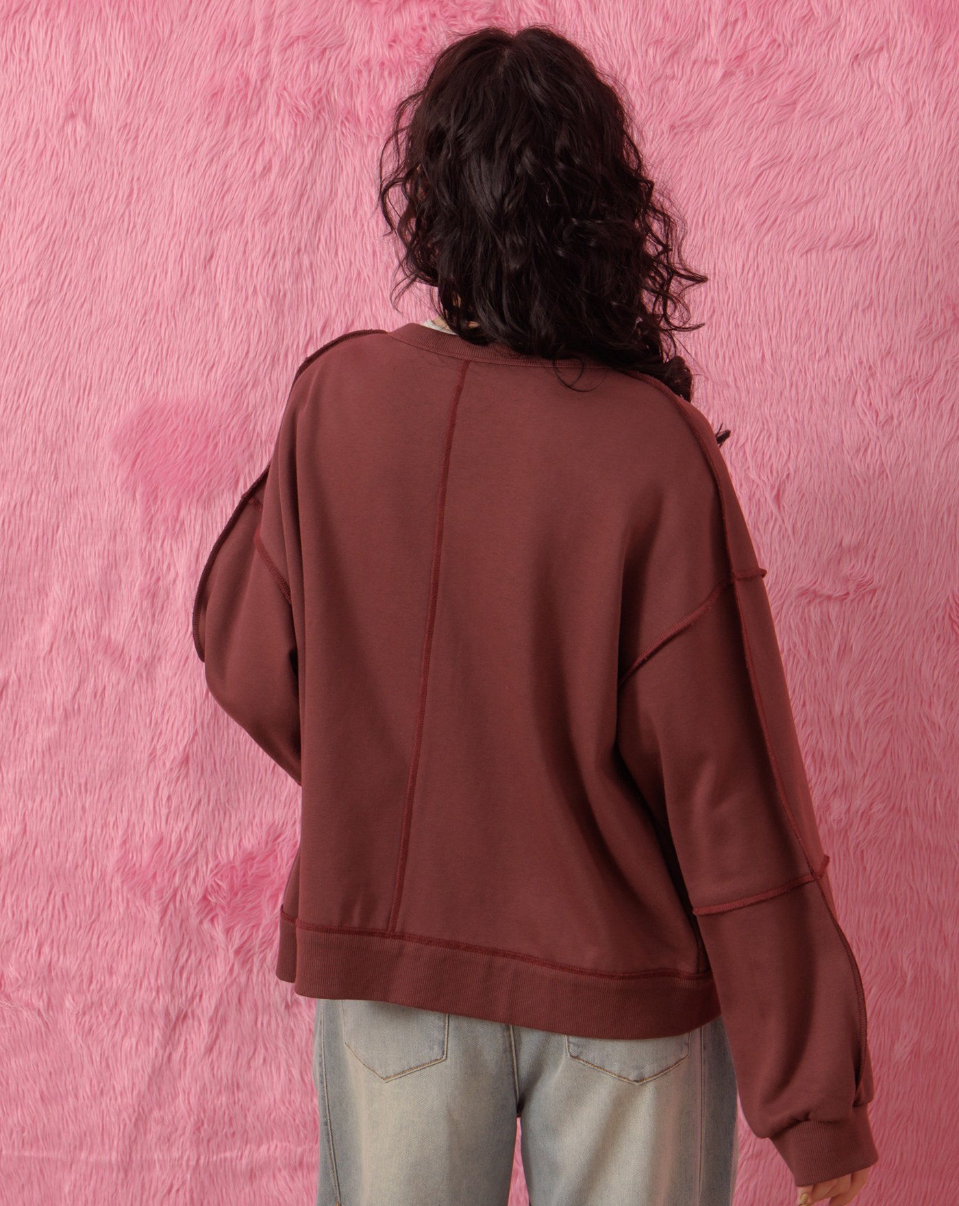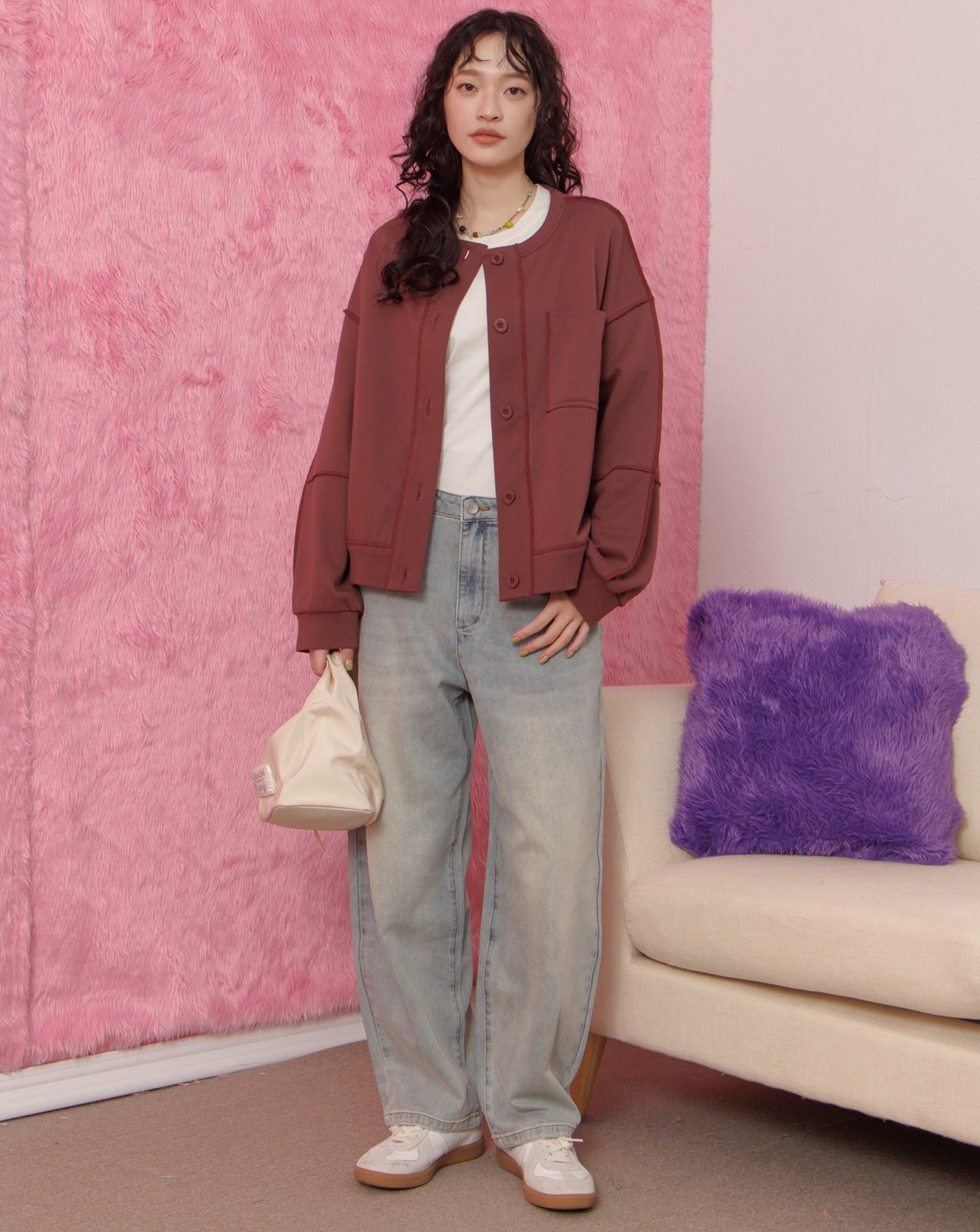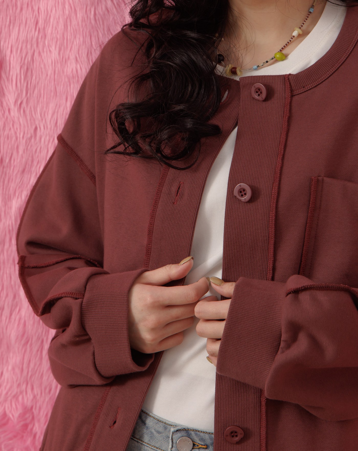 異材質拼色立領廓型外套