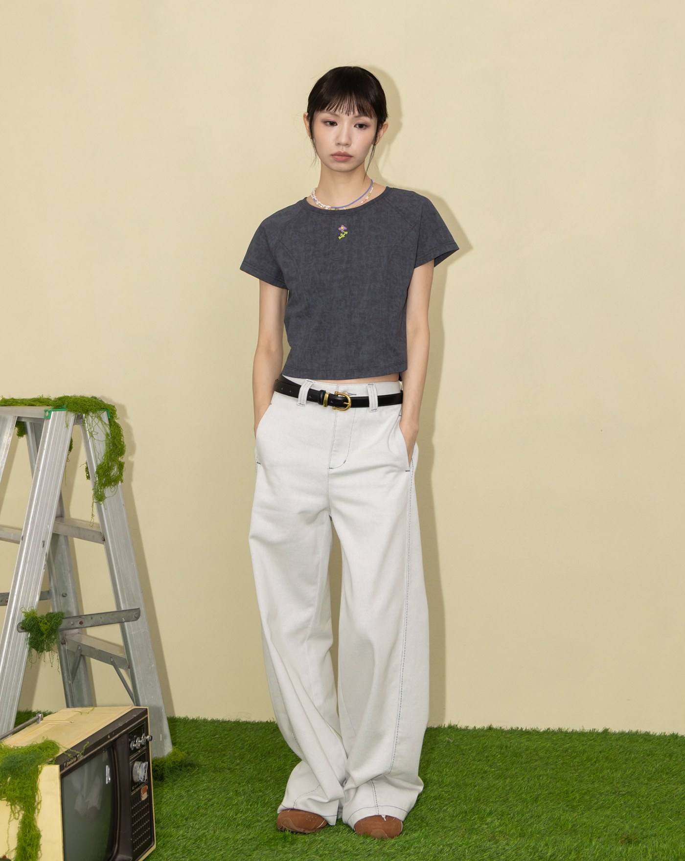 A|英文刺繡兩件式不對稱背心T恤(兩色)