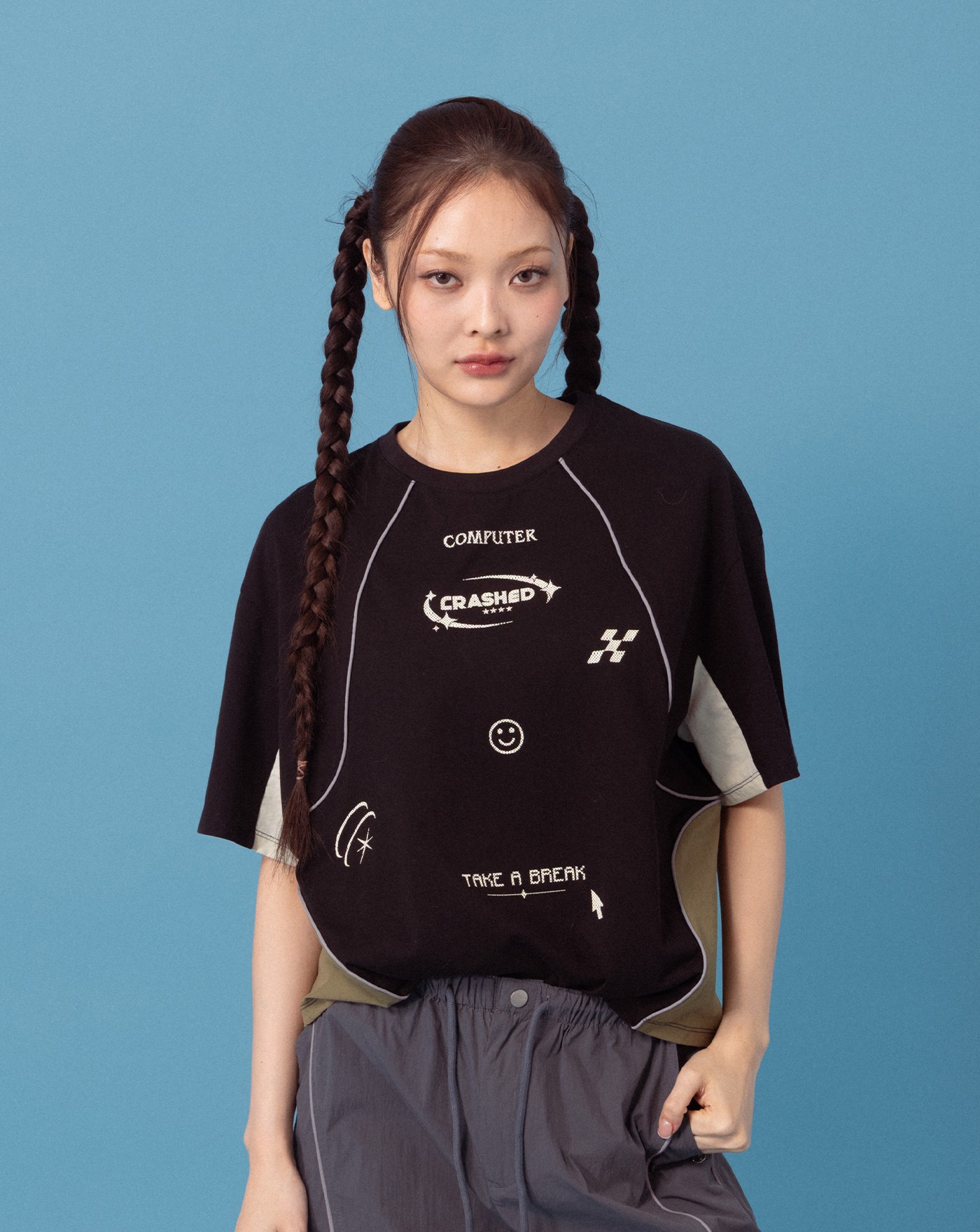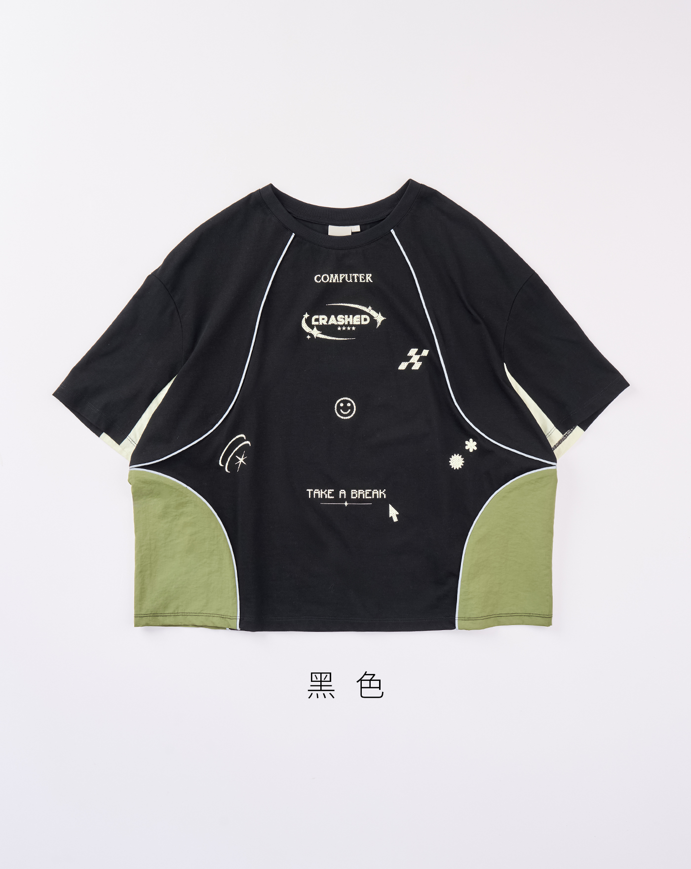 A|彩色潑墨立體標語寬鬆短袖T恤(兩色)