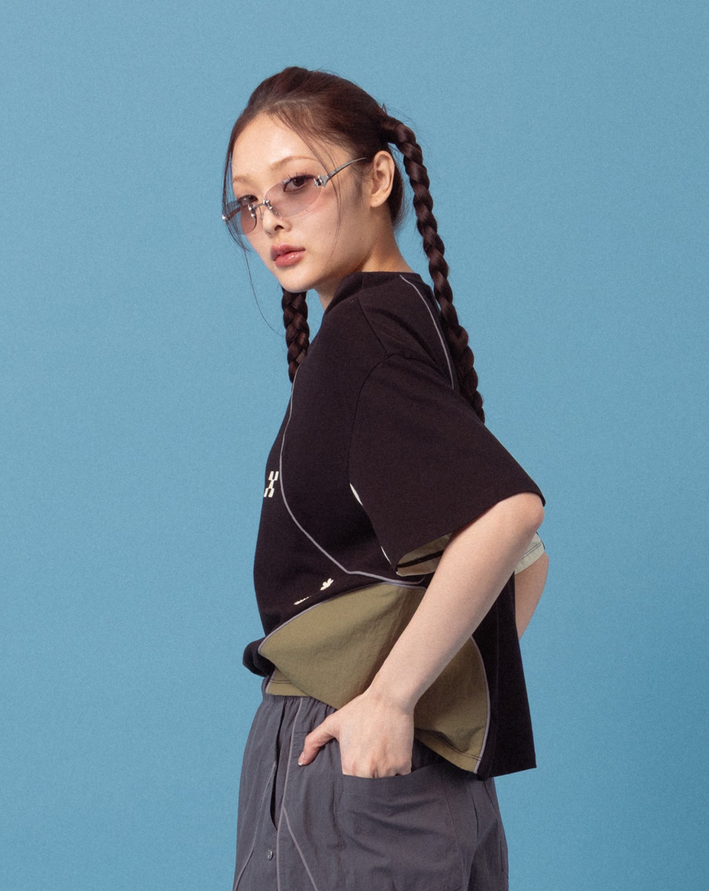A|立體打褶反光線條運動長褲(兩色)