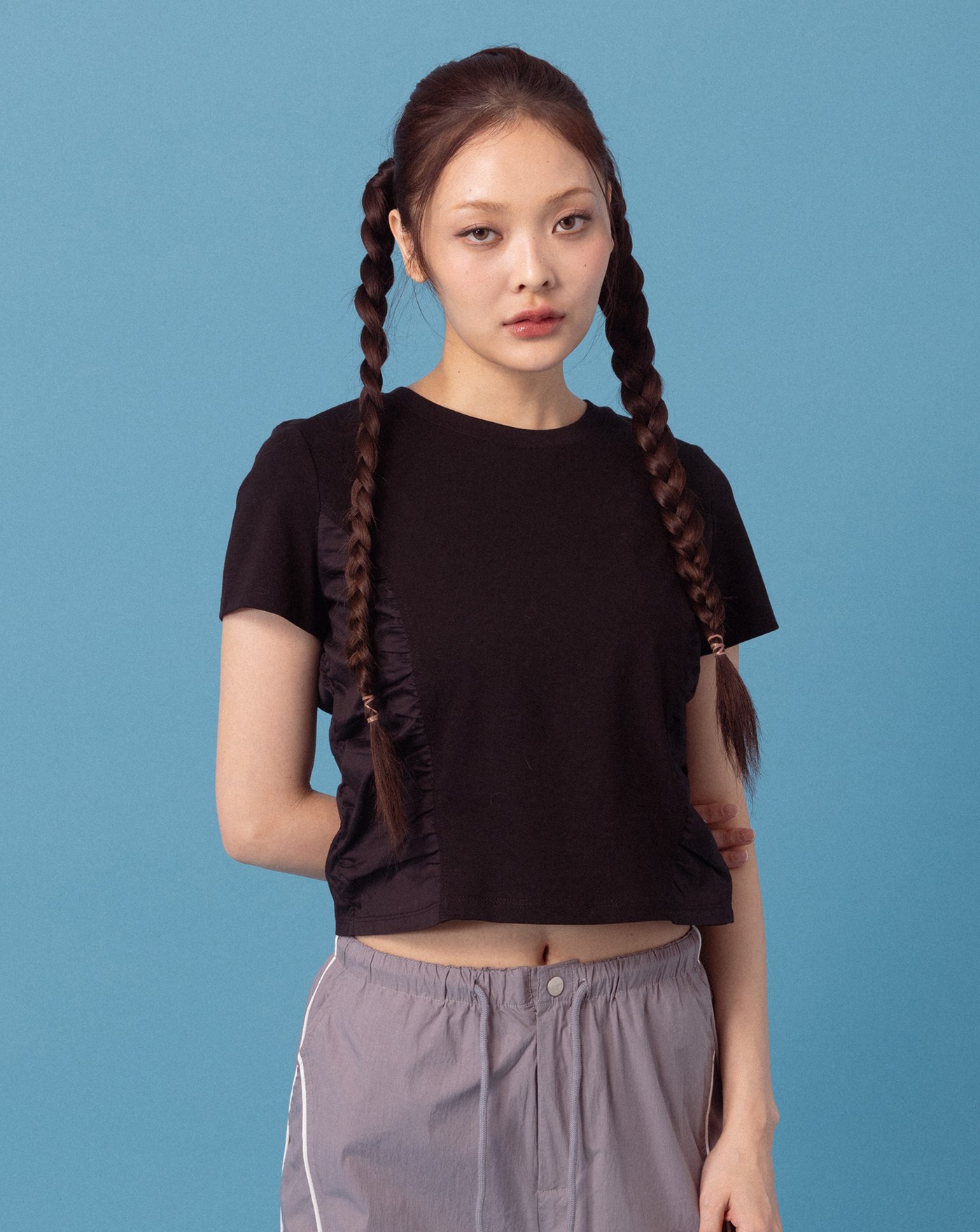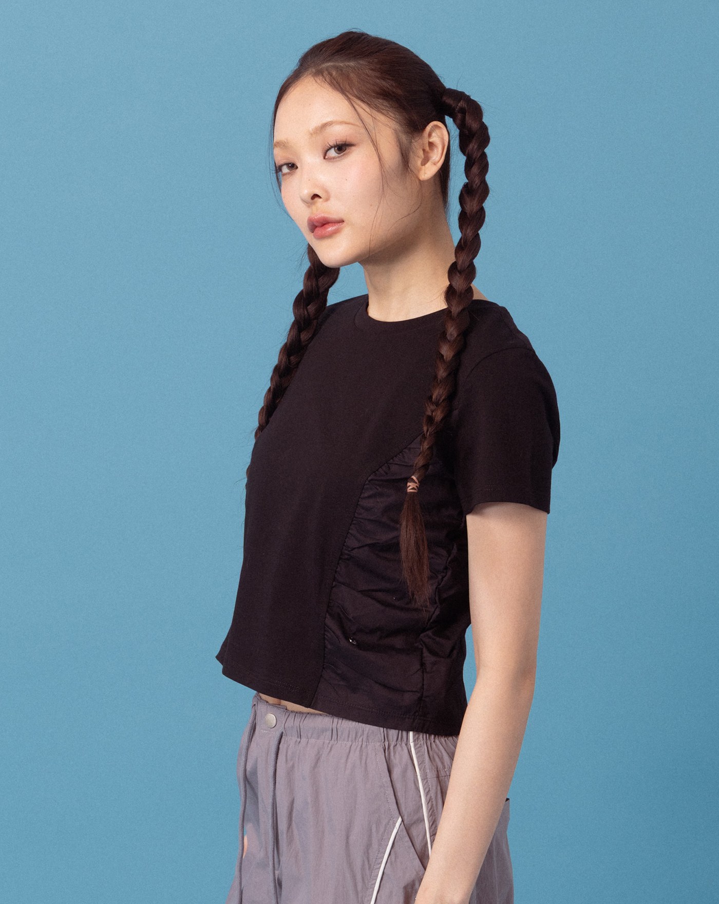 A|雪花水洗立體車線修身T恤(兩色)