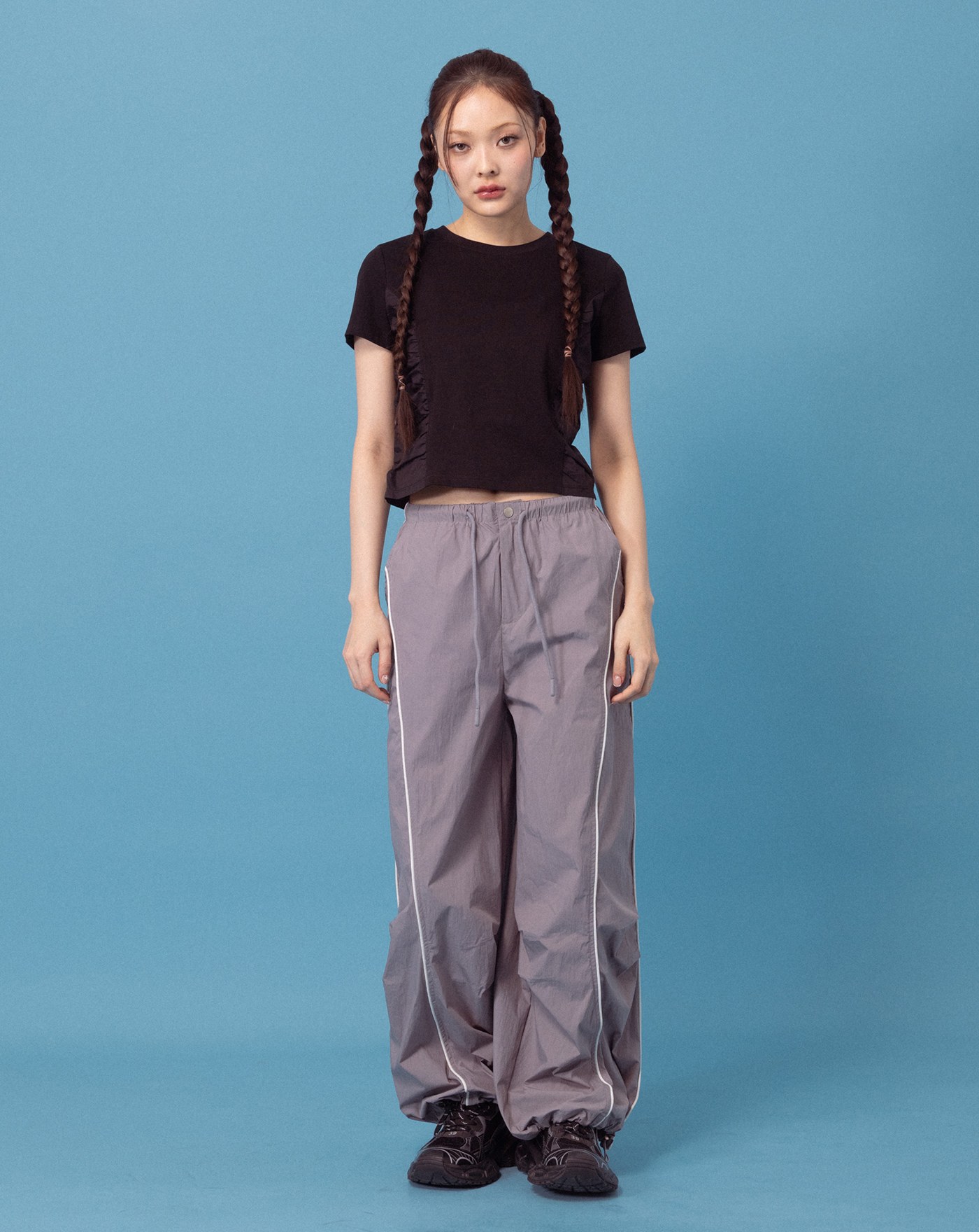 A|立體打褶反光線條運動長褲(兩色)