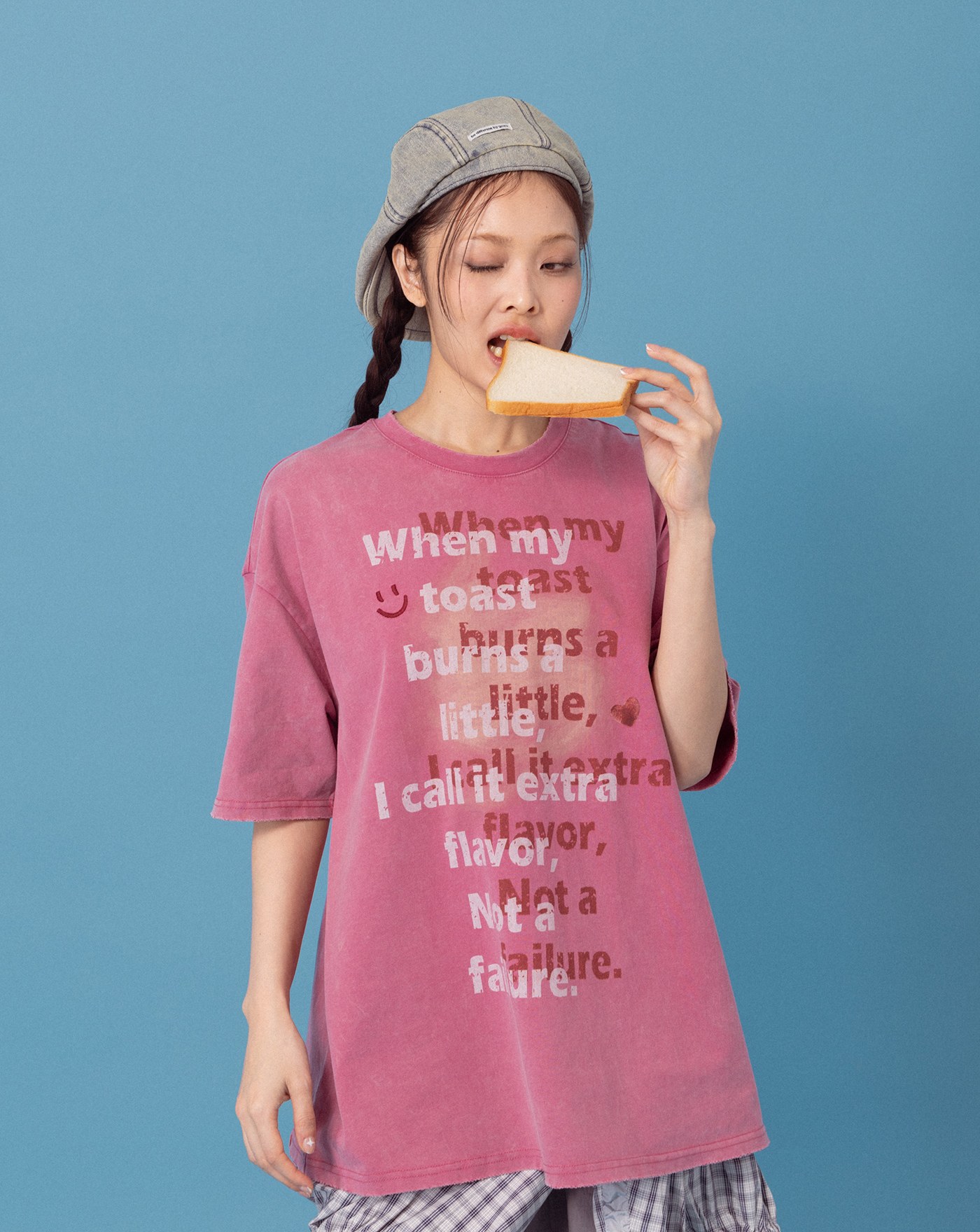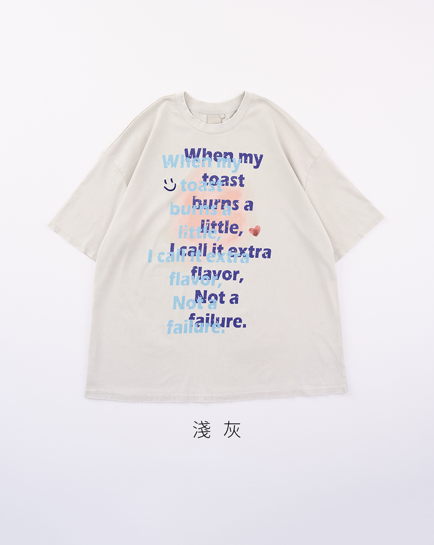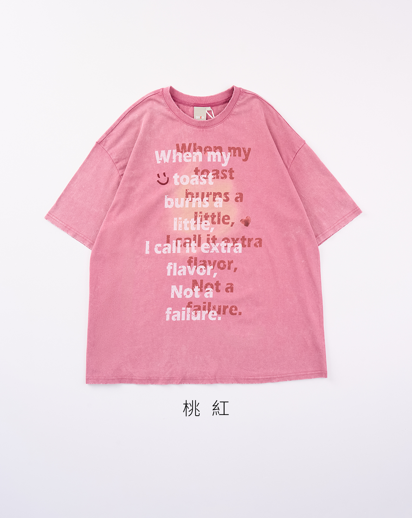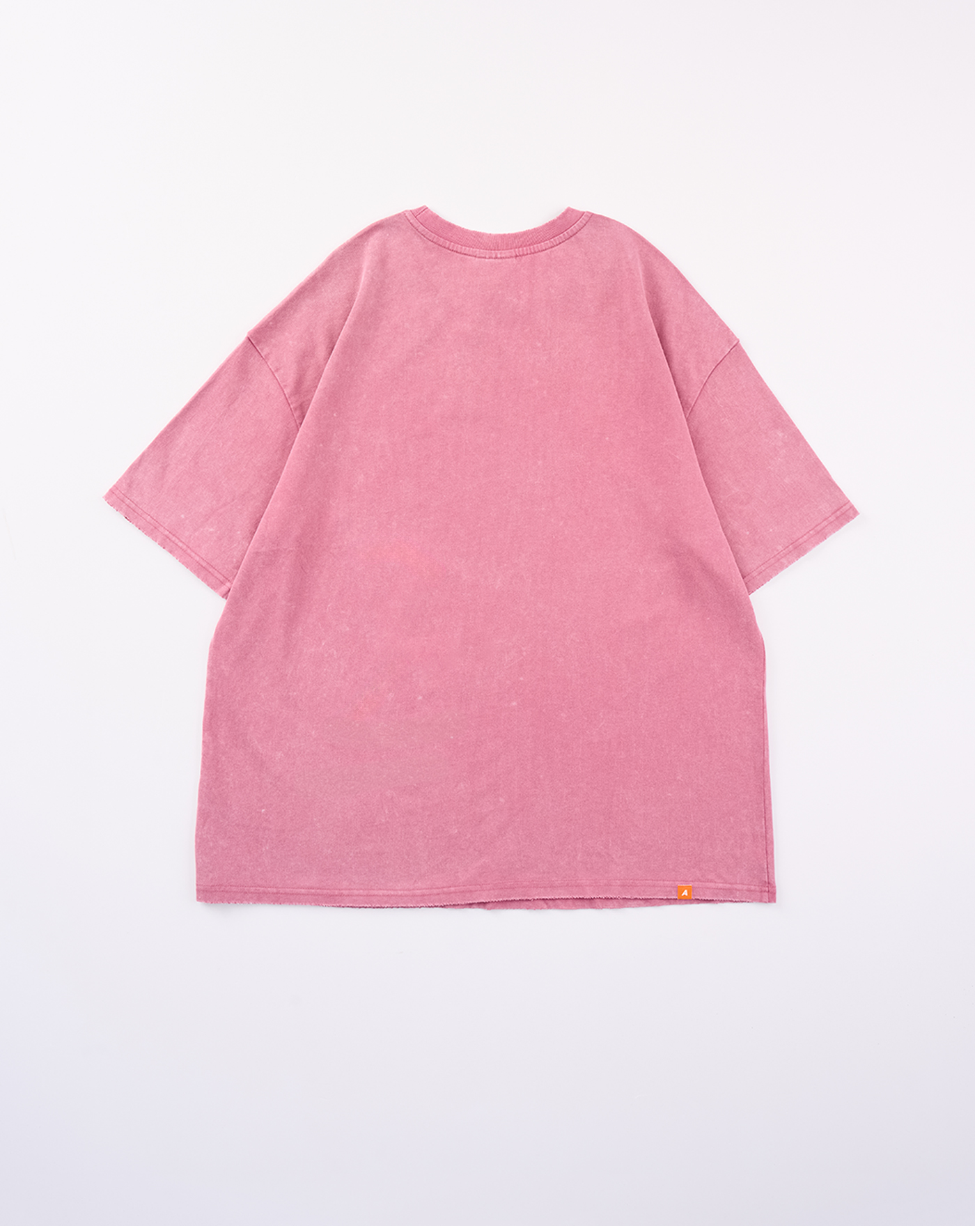 A|十字繡愛心花朵蠟洗寬鬆T恤(兩色)