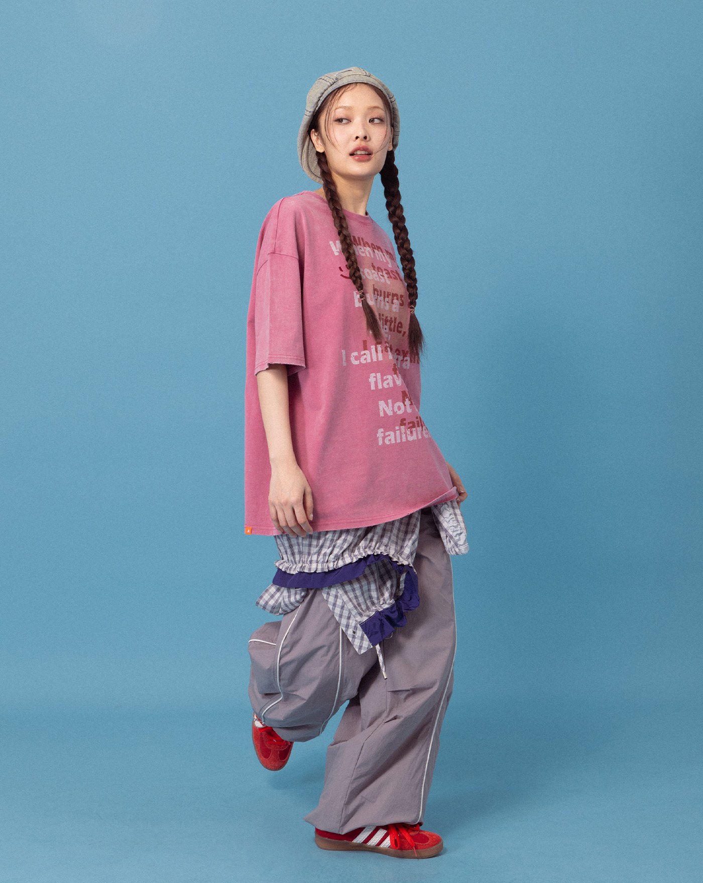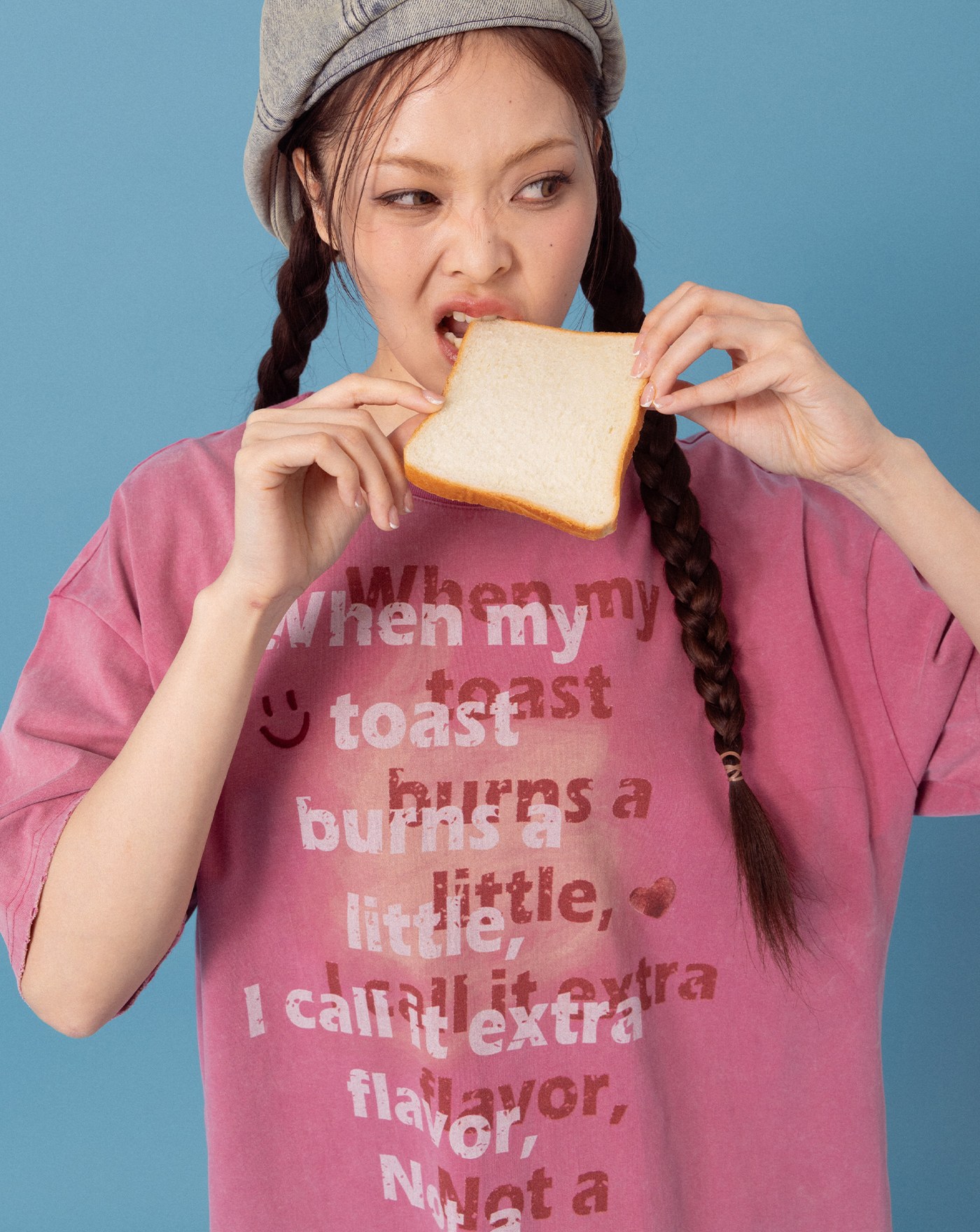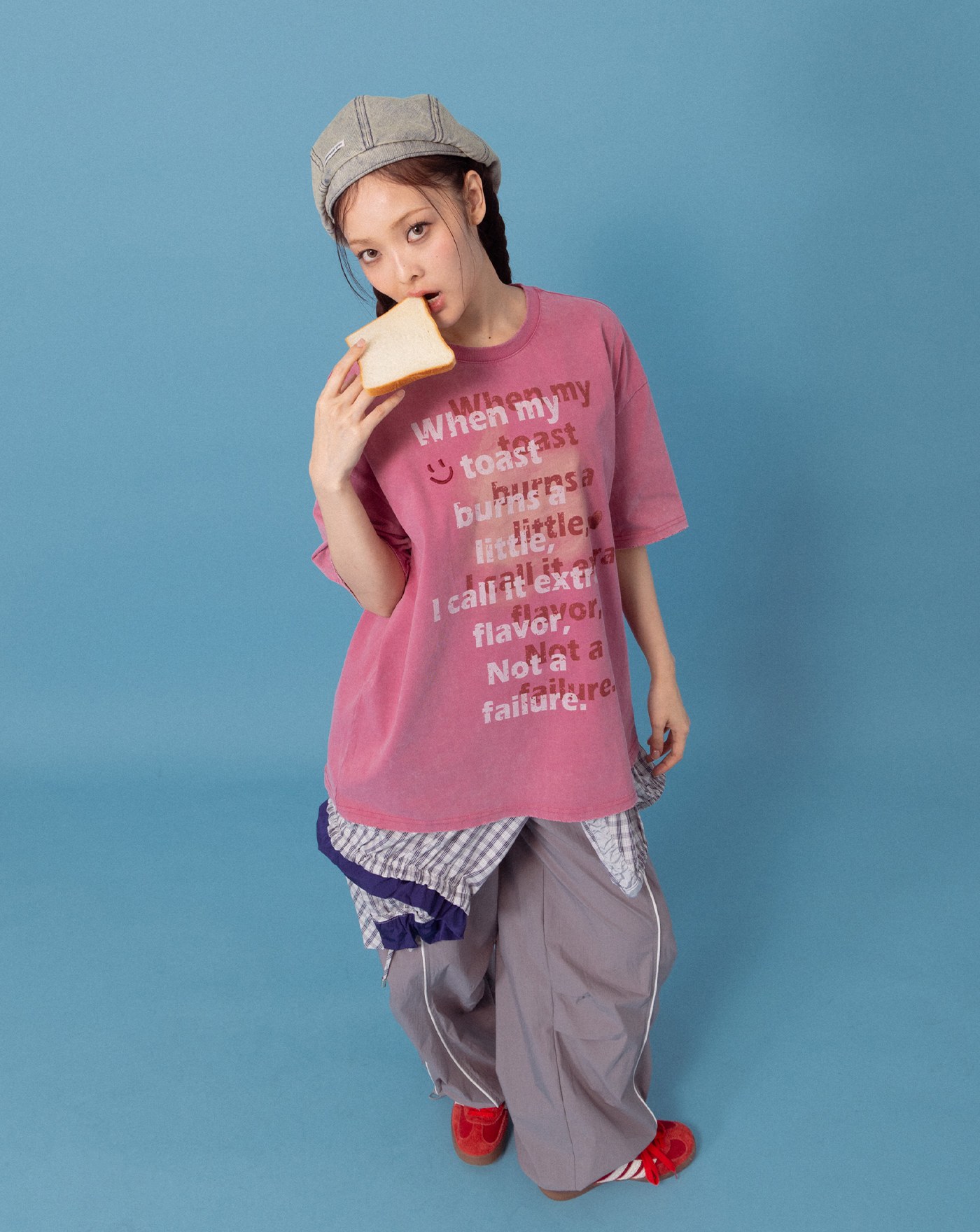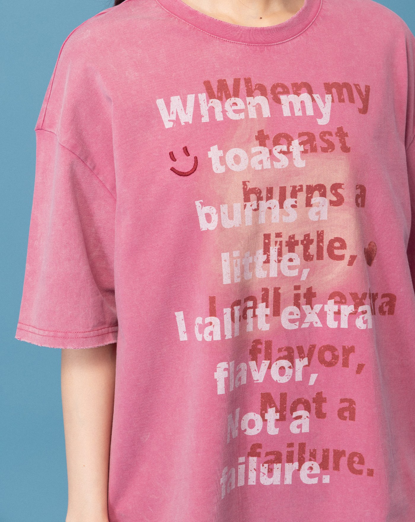 A|十字繡愛心花朵蠟洗寬鬆T恤(兩色)