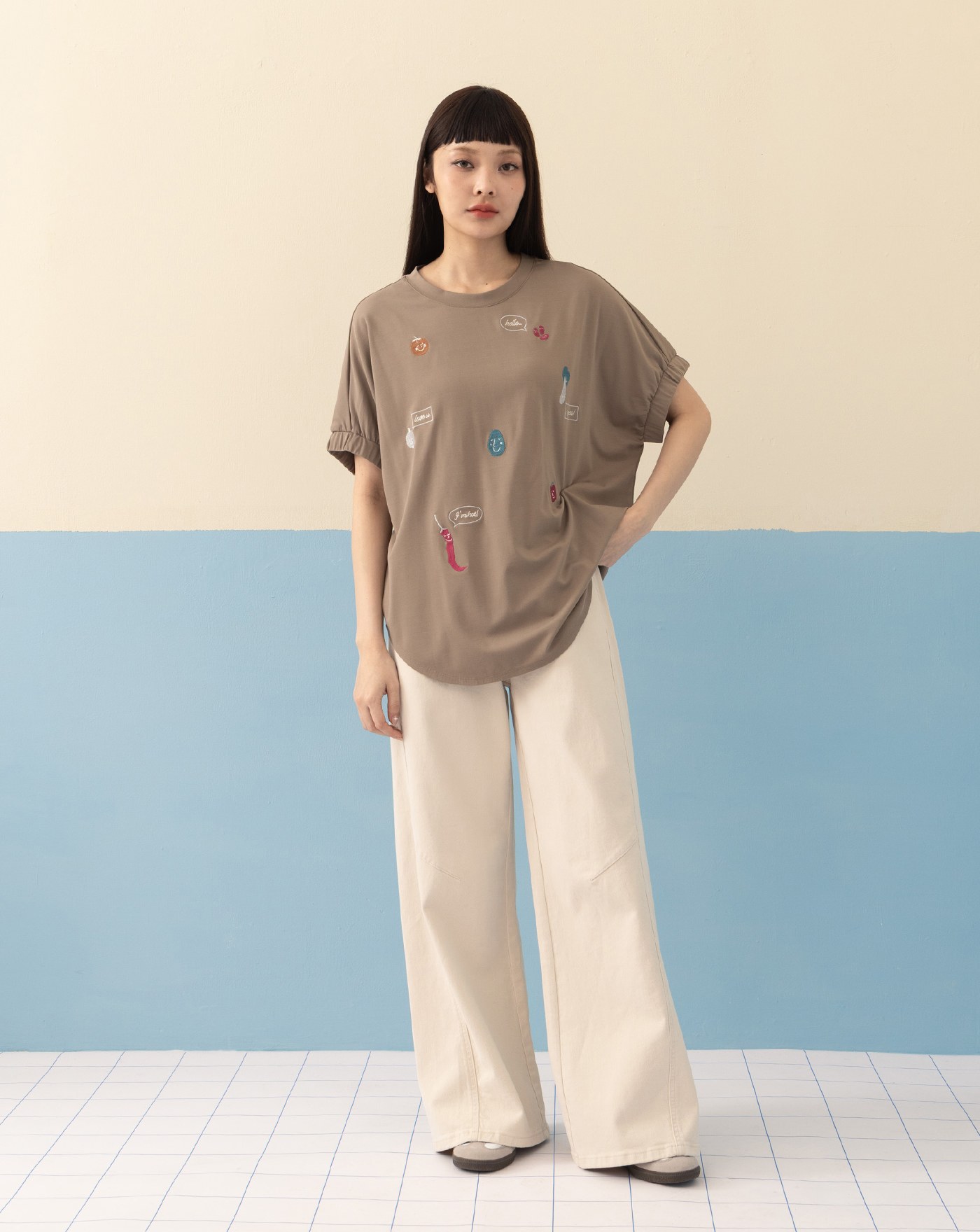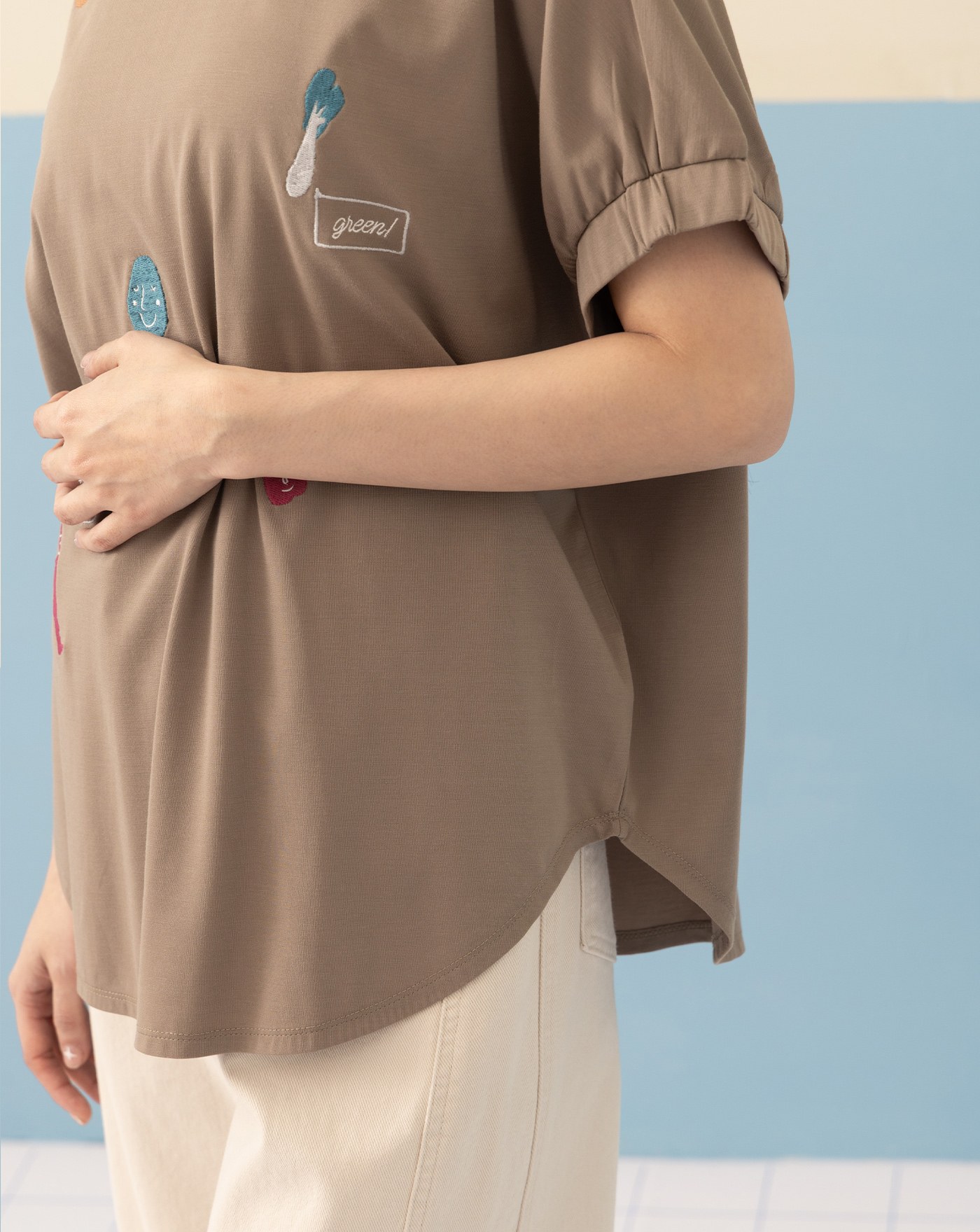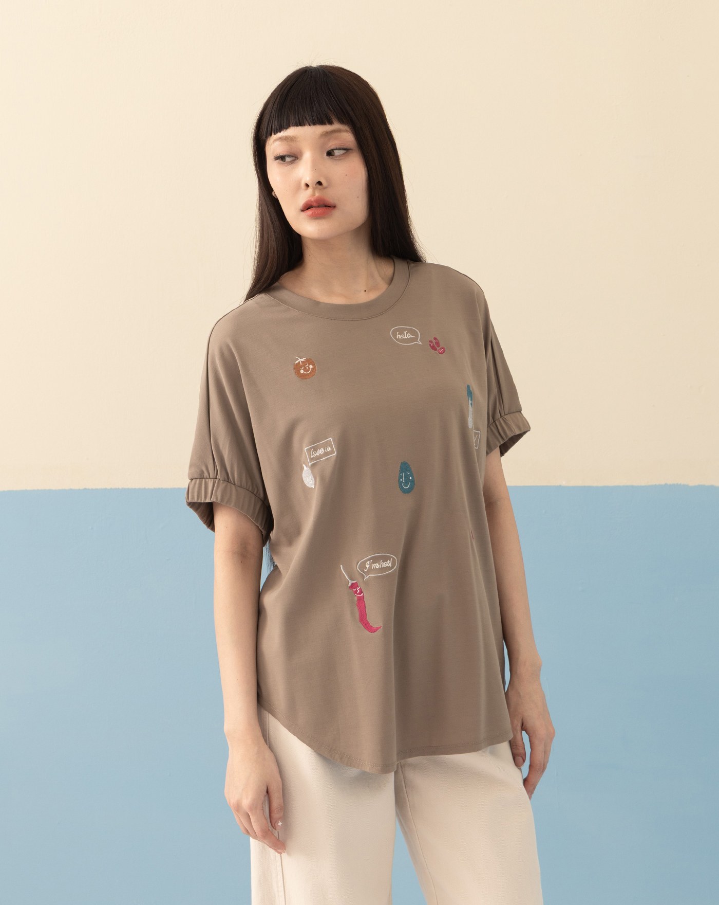 ➤涼感抑菌不對稱剪接寬版T恤(兩色)