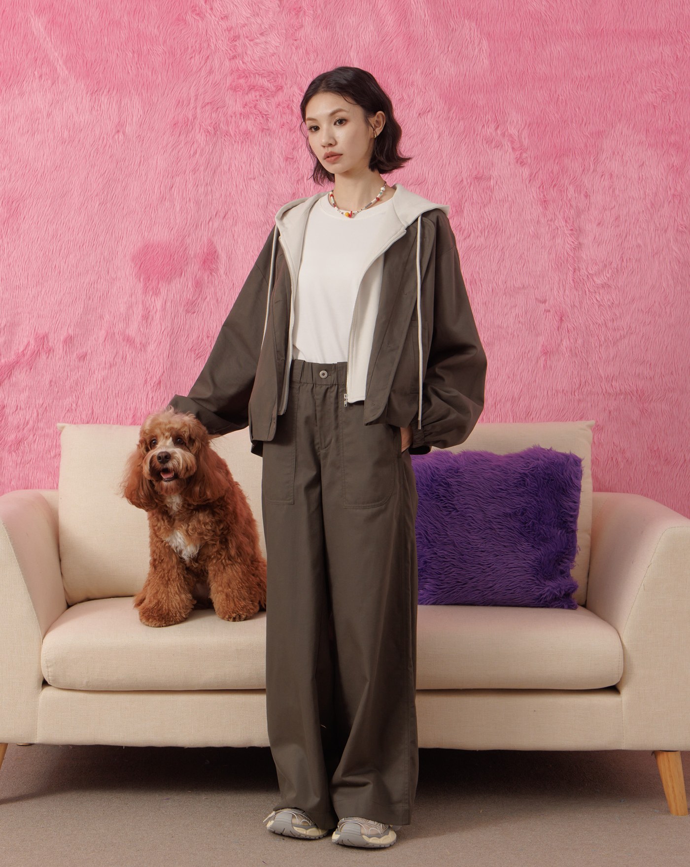 天絲多口袋鬆緊工裝寬褲(兩色)