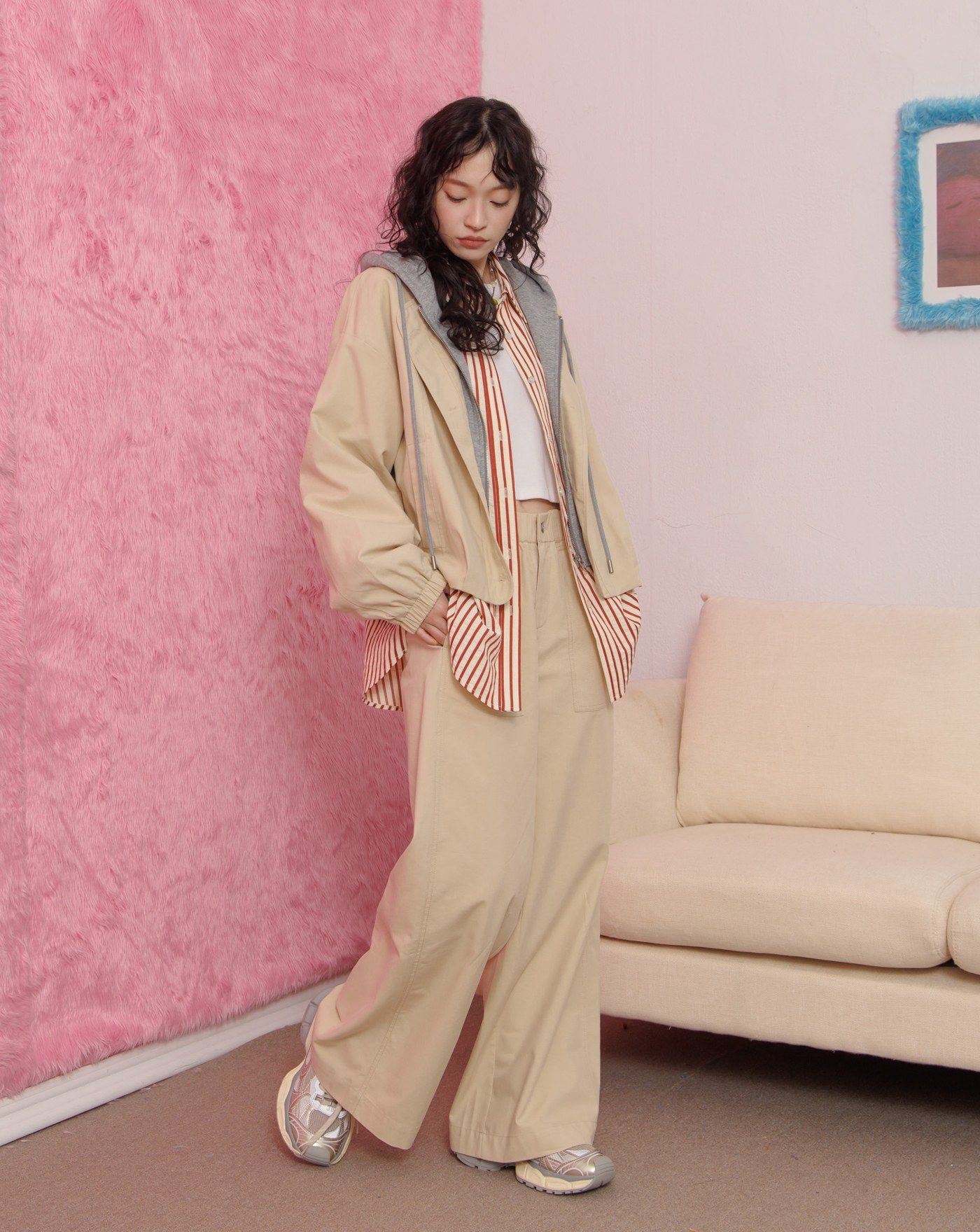 天絲多口袋鬆緊工裝寬褲(兩色)