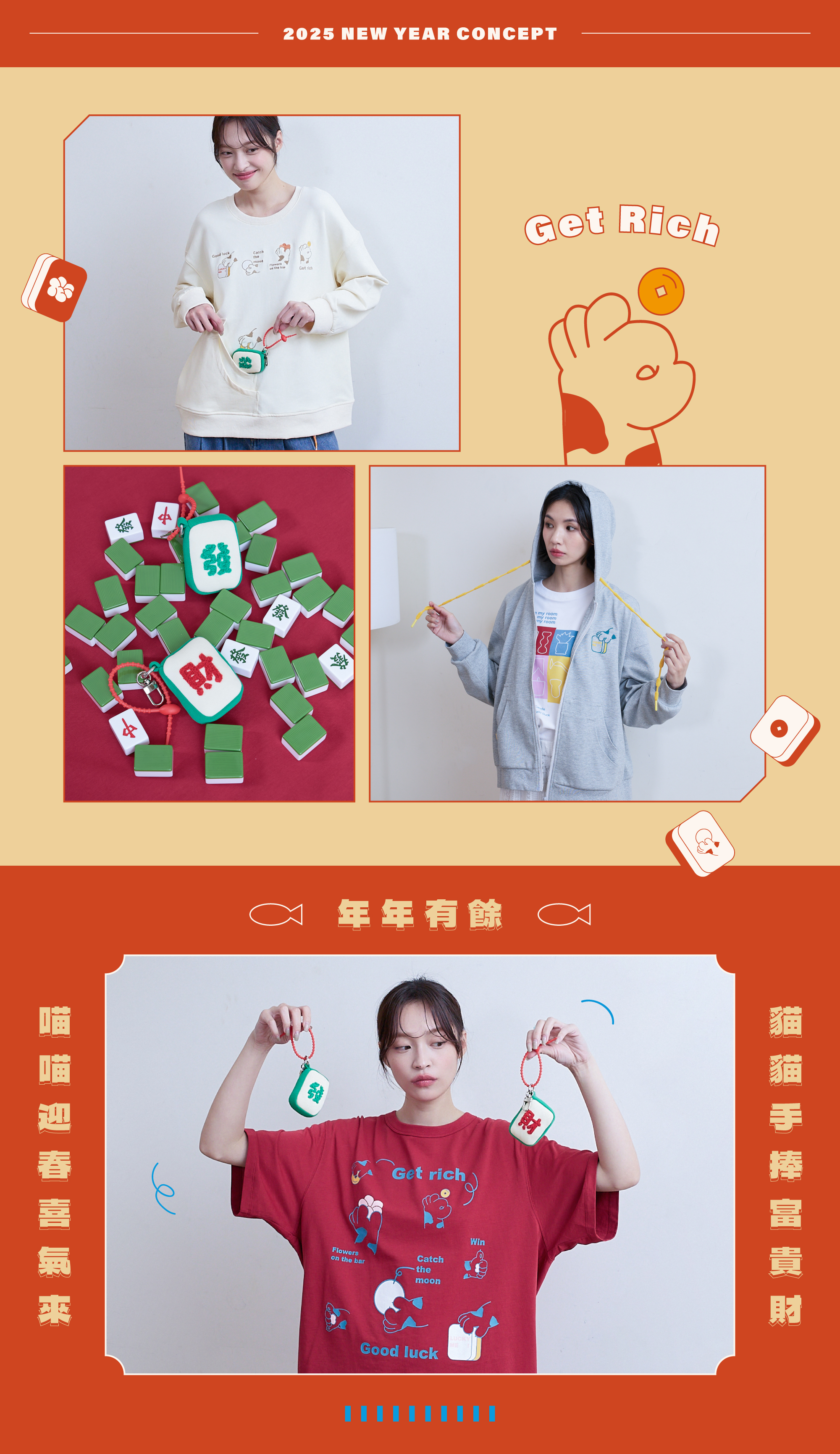 旺!貓貓打麻將緹花長襪(兩色) NT$300 NT$240 ➤LUCKY!貓貓打麻將多口袋大學T(兩色) NT$2,780 NT$1,390 ➤MONEY~錢進口袋造型帽繩帽T(兩色) NT$2,780 NT$1,390 ➤自摸~麻將多口袋造型帽繩連帽外套(兩色) NT$3,580 NT$1,790 ➤RICH!貓貓打麻將厚磅純棉寬版T恤(兩色) NT$2,180 NT$1,090 1 目前顯示第 1 - 5 筆資料,共 5 筆